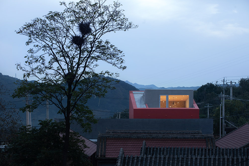 “Beigou Future” tower hosts an exhibition space within its main staircase, a building service space on the first floor, and a terrace overlooking the Great Wall on the top floor.