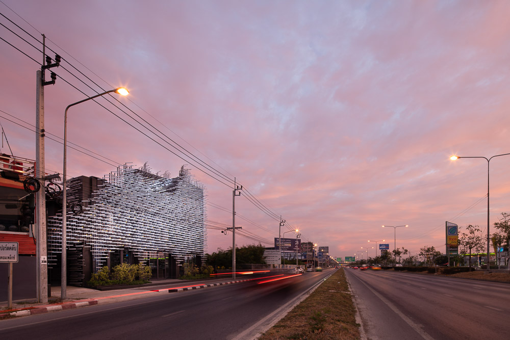 MoMA is the abbreviation for Museum of Modern Aluminum. The project originated from a group of ambitious clients with the goal of reviving the significance of aluminum in Thailand. Thailand was once the largest aluminum manufacturer in Southeast Asia at the end of the 20th century. Its diverse and abundant aluminum profiles not only satisfied the local market but were once known for exporting to overseas markets. However, the Asian Financial Crisis hit without warning in 1997. This prompted Thailand’s aluminum industry to sell aluminum profiles at low prices to hardware markets around the country in order to survive, resulting in the clutters of advertising signs, balcony fences, and ground floor extensions that make up the present-day Bangkok streetscape.