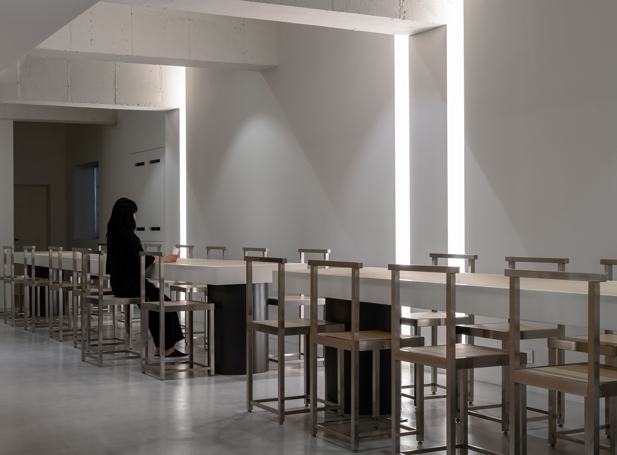 The curved Guro iron plate partition and ceiling design make it feel like wrapping the center of the brooding bar, and the straight indirect lighting on the ceiling maximizes the direction of the bar, and awakens the customer's sense with the aroma of coffee filling the space with the bar's brooding motion.