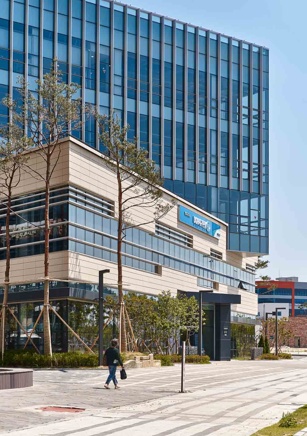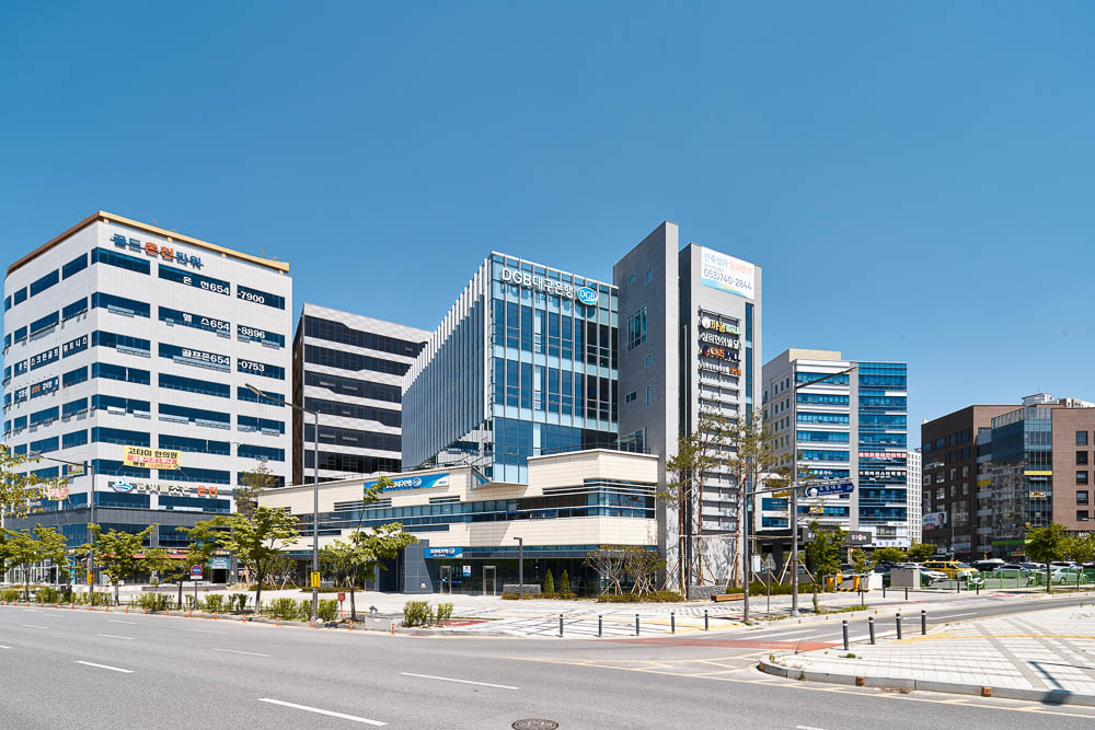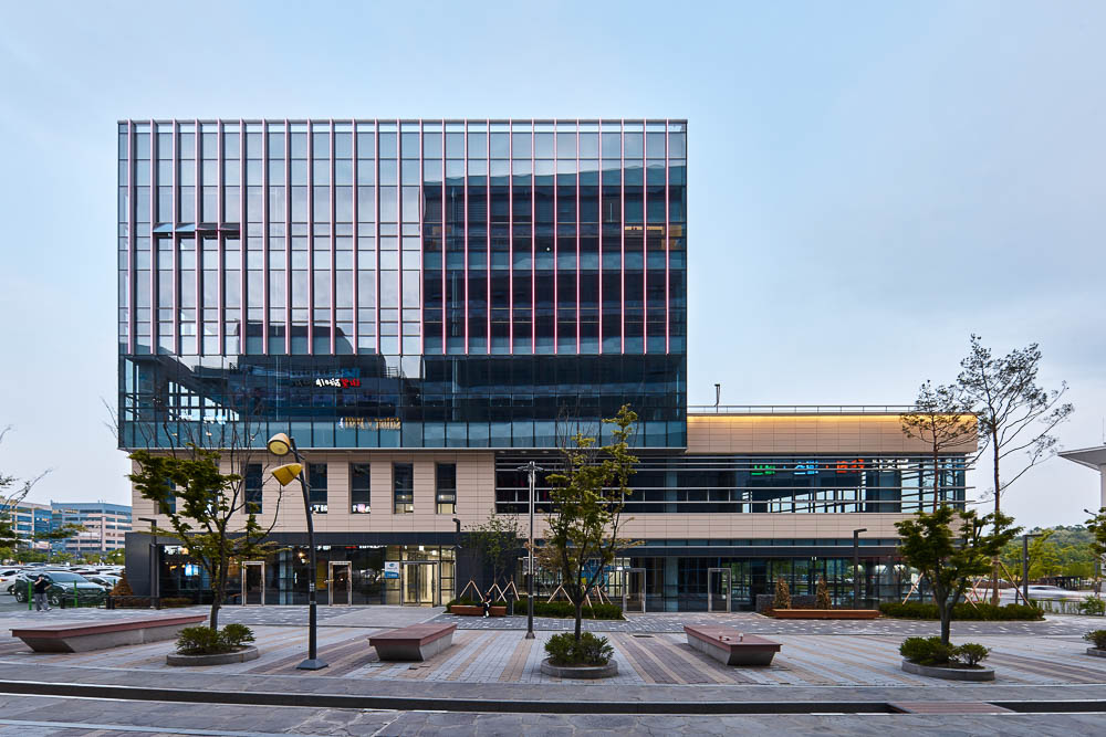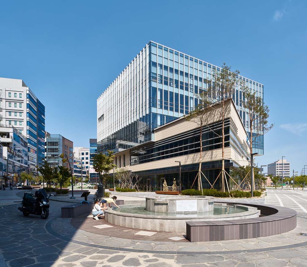 The DGB(Daegu Bank) Office Building, located in the New Town designated for the Relocation of the Gyeongbuk Provincial Government Office, is a project that is part of the First Phase Plan of the Provincial Government Office New Town. It is located in the center of the commercial area, with a residential complex on the north side and administration facilities such as the provincial government office on the east side towards Andong. If you look closely at the master plan of the entire new town, it is located in the center where the city’s central uses are intensively placed. Due to these characteristics specific to the location, there are two urban axes intersecting on the site: The main-axis of the traffic flow that connects to the main administrative facility group, and the sub-axis of the urban expansion that extends from the center to the periphery. Due to these two axes that embrace the flow of the city and the site, the building was intended to create a new commercial space that interconnects the commercial viability of the neighboring commercial buildings within the commercial district with the potential of forming an inter-active square and the public nature of the urban streets. The transparent and glowing glass box, placed on the low-rise solid mass that corresponds to the polygonal-shaped site and the sensation of the speed of the front road, illuminates the city from the center. It is the lighthouse that illuminates the new town as if it were guiding the direction in the dark sea. Architectural practice is always a process of interpreting different contexts surrounding the site, combining the client’s requirements, and creating the result of intense communication that sorts out the corresponding elements from those that do not. In this process, it is always necessary to tune the design between the public nature and commercial viability, and the architect is the conductor in this tuning process.