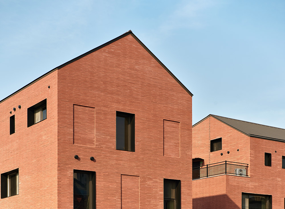 작은 마을에 일관된 건축을 위한 규칙이 있다. 규모, 한계선, 지붕 모양, 색채 등. 2, 3층의 집들은 건폐율 30%로 개인 공간을 확보하기 위해 노력하고, 간섭에서 자유로운 마당을 확보하는 것은 당연할지 모른다. 열린 마을을 기대했지만 거리에서 바라본 모습은 대체로 무표정하다.