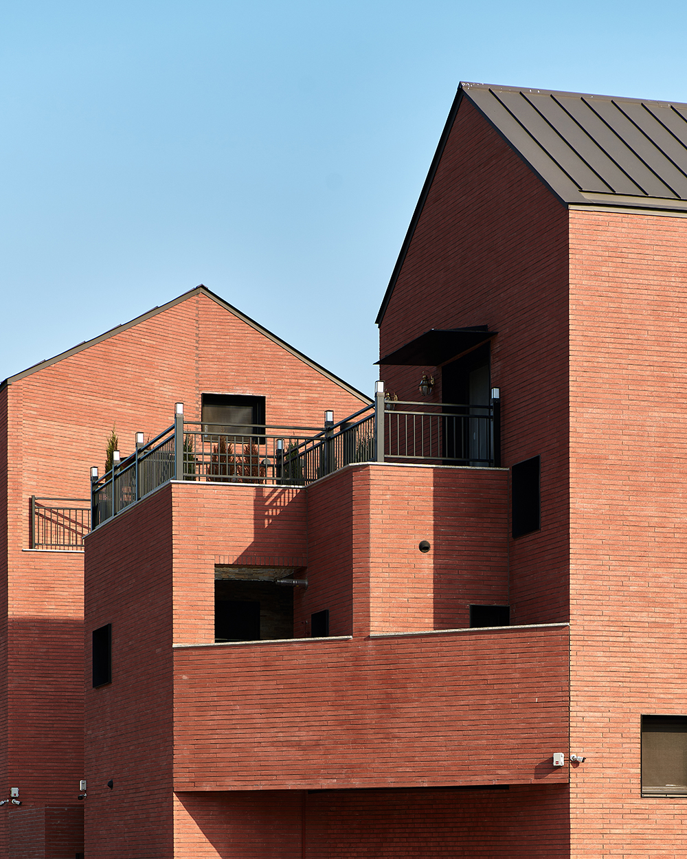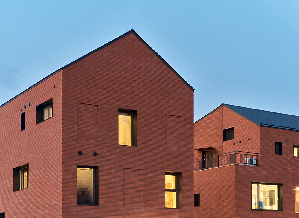 작은 마을에 일관된 건축을 위한 규칙이 있다. 규모, 한계선, 지붕 모양, 색채 등. 2, 3층의 집들은 건폐율 30%로 개인 공간을 확보하기 위해 노력하고, 간섭에서 자유로운 마당을 확보하는 것은 당연할지 모른다. 열린 마을을 기대했지만 거리에서 바라본 모습은 대체로 무표정하다.