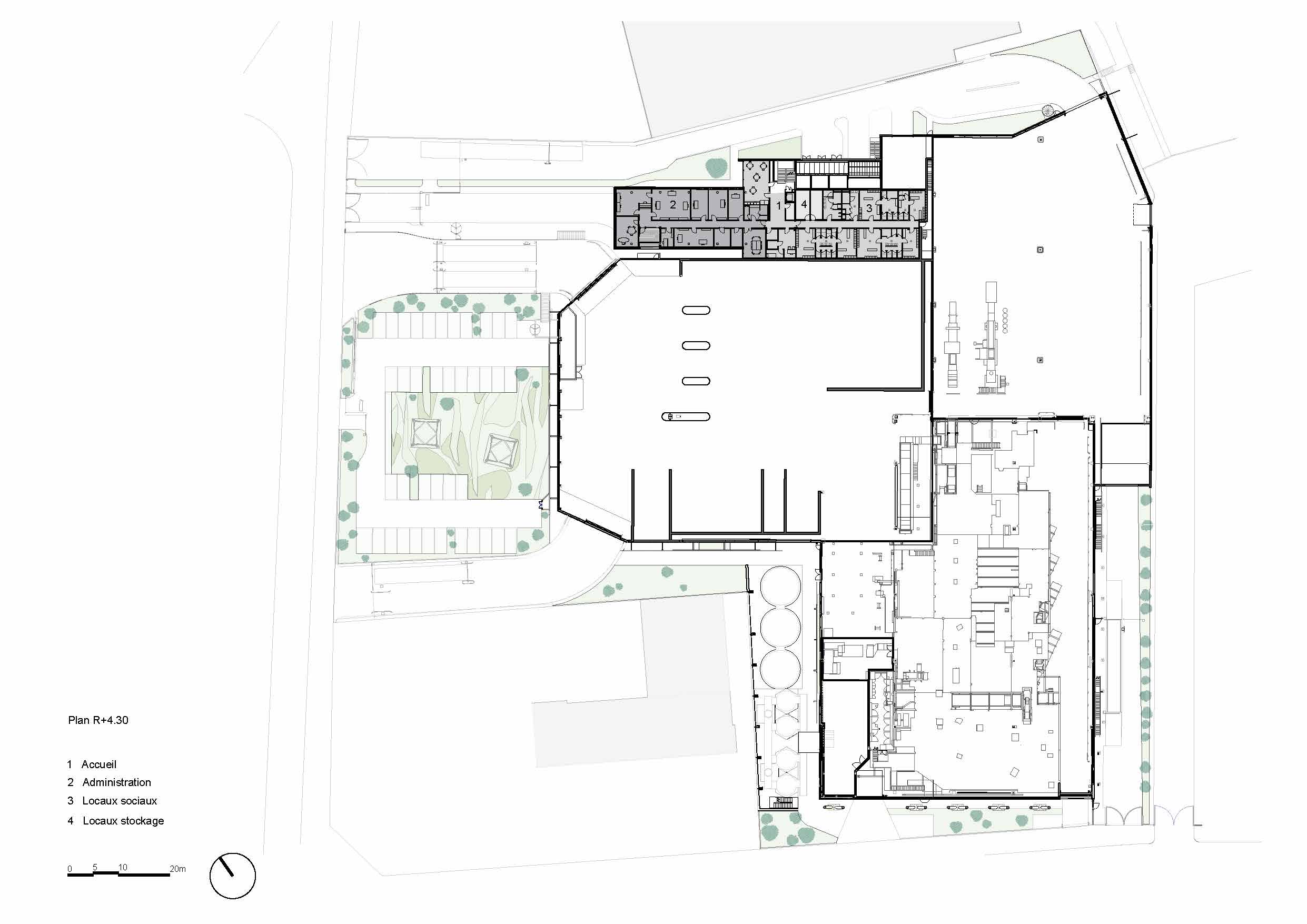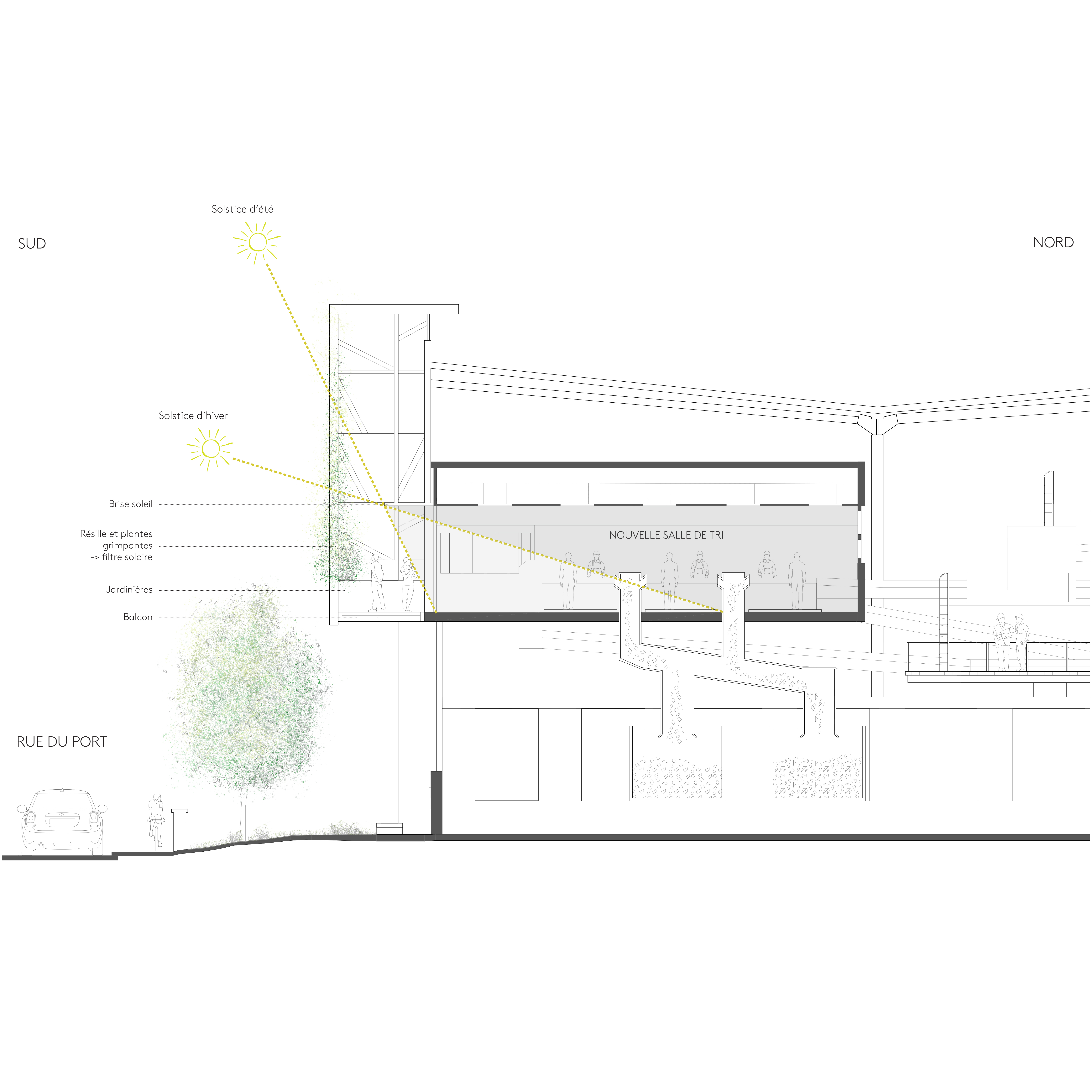 On a densely built and constrained plot (Flood Risk Prevention Plan), the stakes of the rehabilitation resided in the increase of the capacity of reception and treatment of the material, in the reorganization of the overall operation of the site and in the upgrading and thermal and environmental renovation of the buildings. LVA organized a fluid and clear operation while preserving a maximum of existing constructions.