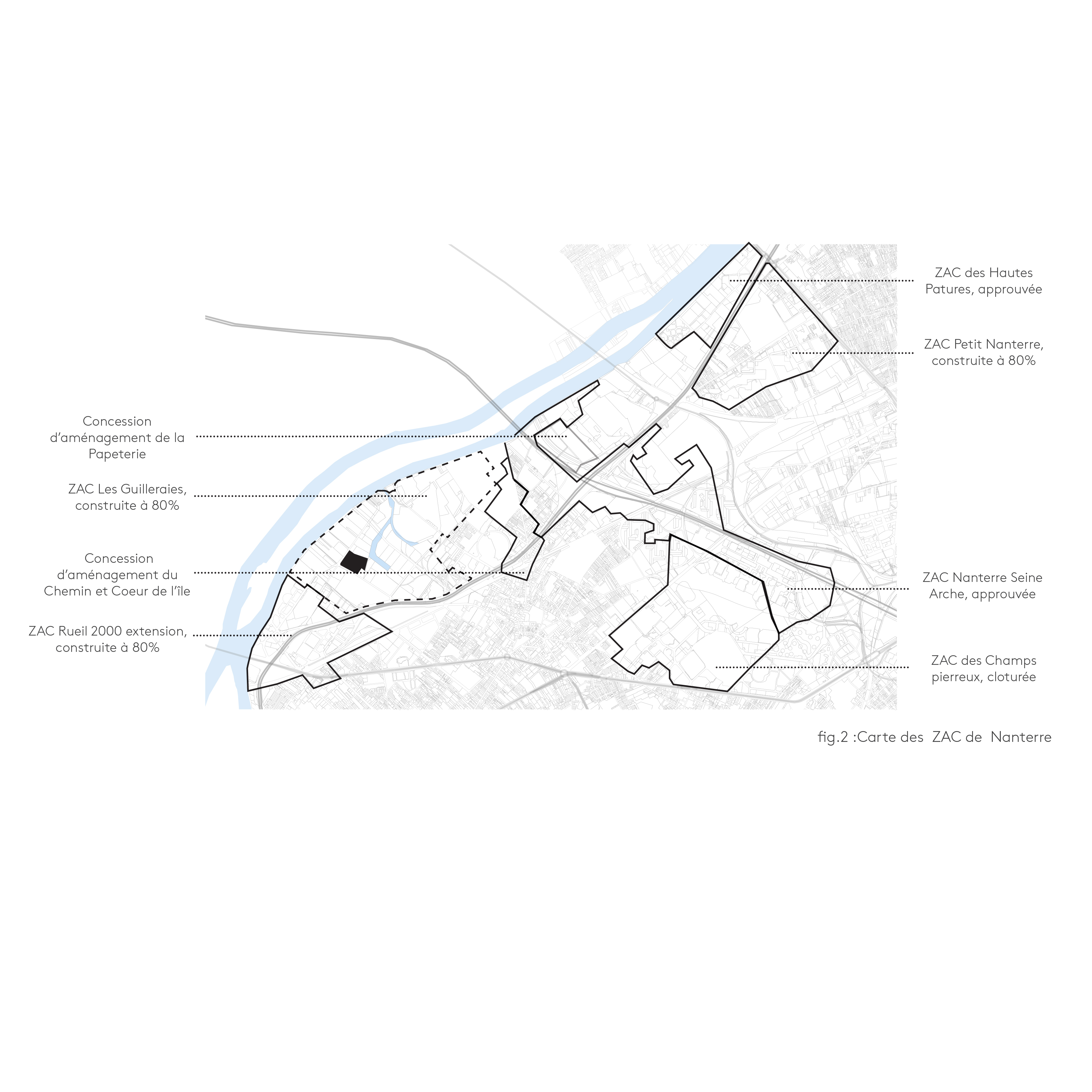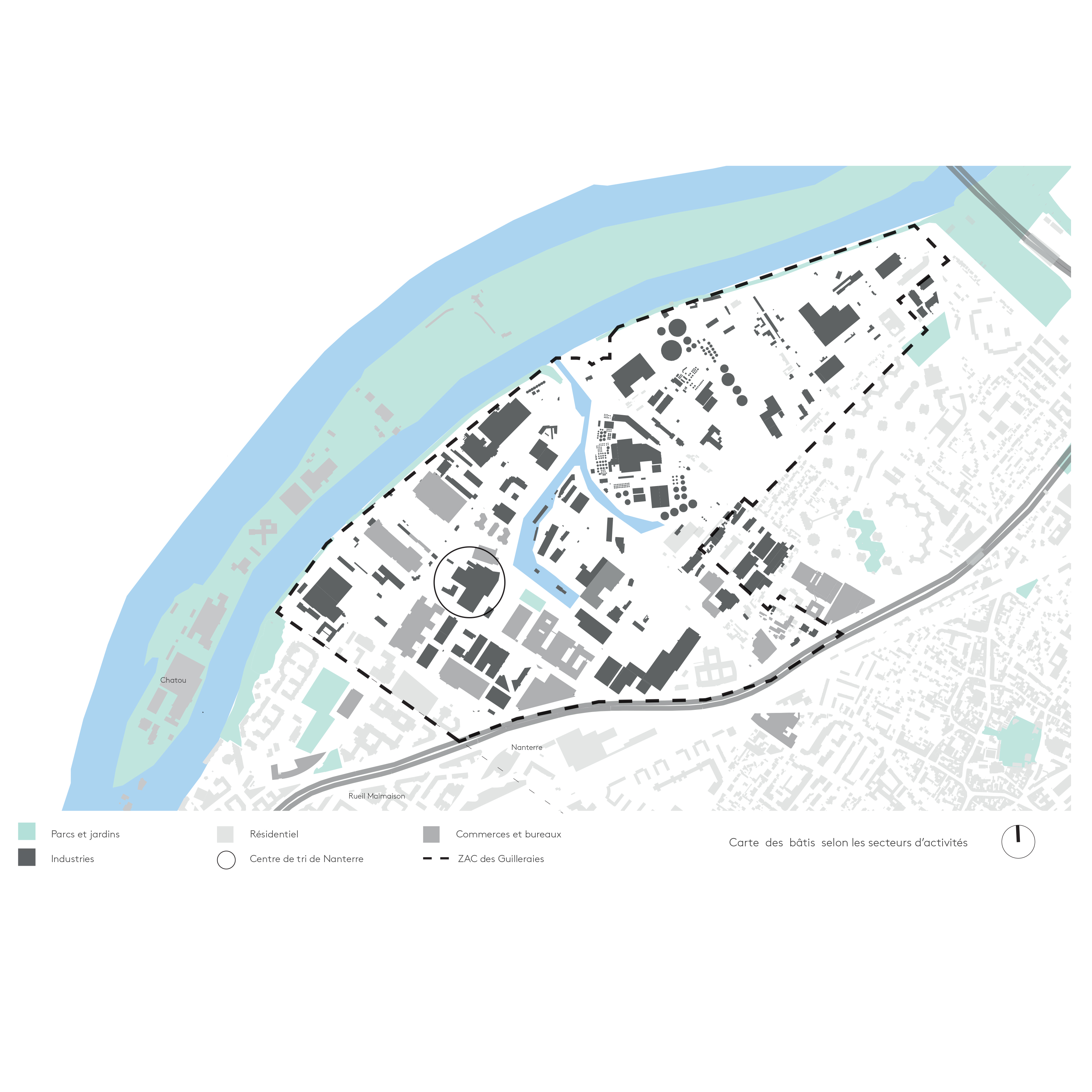 분류 센터의 현대적 건축적 재탄생은 산업활동과 3차 산업의 혼합을 보여준다. 이 대지는 ‘생산’하는 도시 구조의 일부로 정의된다. 이전 산업 활동에 전념했던 지역인 기예라스(Guilleraies)의 JDZ(공동 개발 구역)개발은 원래의 역할을 강화하면서 많은 3차 산업활동을 도입했다. 따라서 분류 센터와 새로운 지역의 도시 및 조경 개발 간의 관계가 중요했다. 지역주민에게도 쉽고 유용하게 쓰이면서 이웃과 차분한 관계를 맺을 수 있도록 했다.