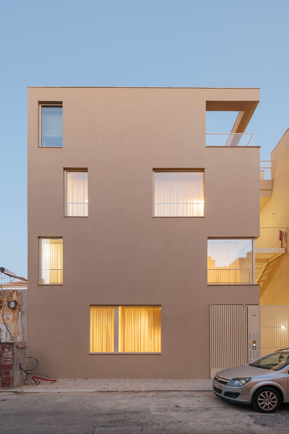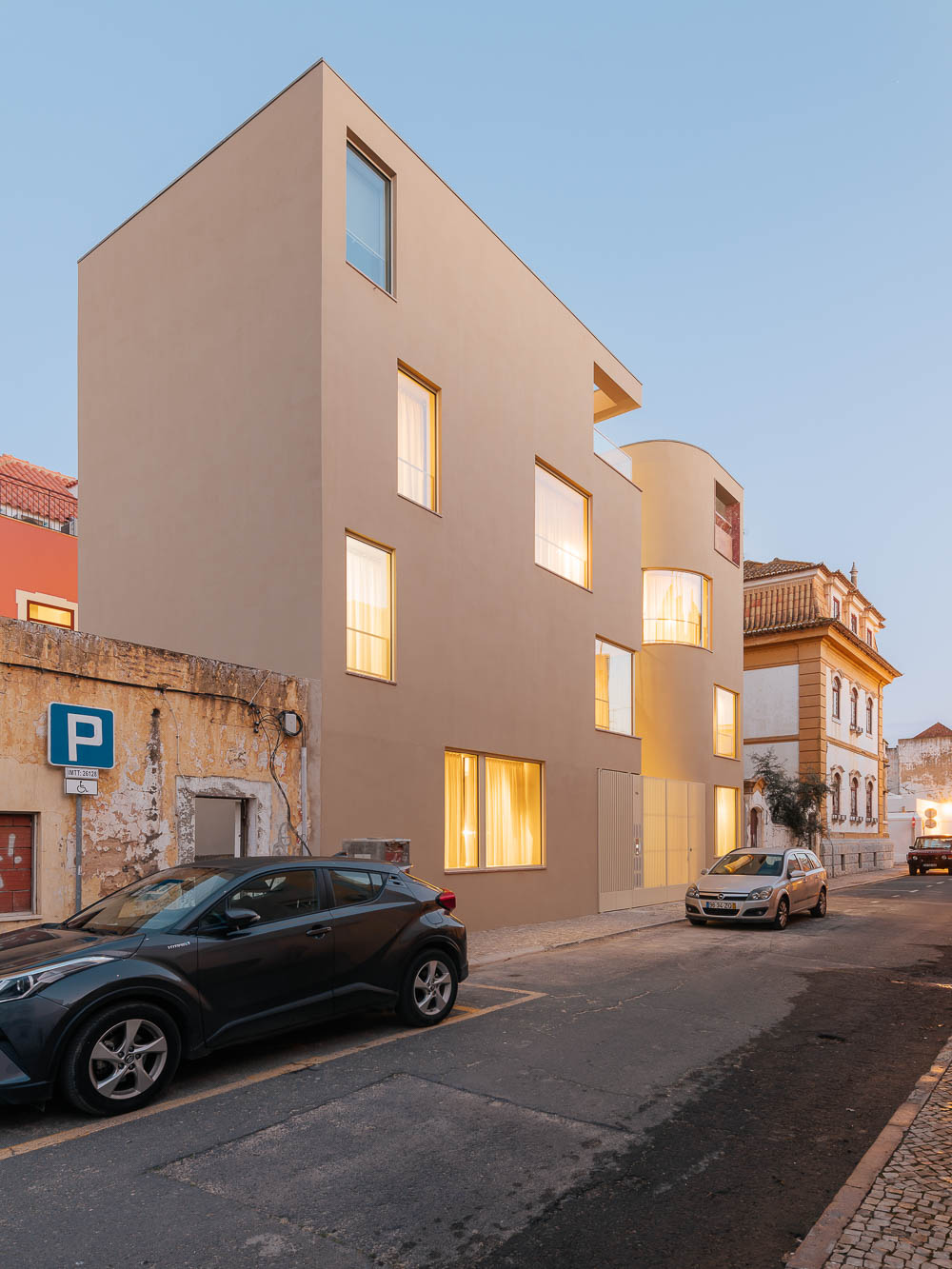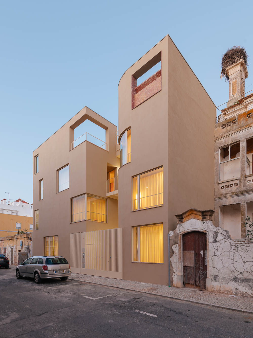 This story begins with an old rose building on the riverside avenue of Vila Real de Santo Antonio, a city located in the south of Portugal. The Mustard building begins as refurbishment of rose-house, is located at the its back. The rose-house is a building with a nice and reasonable appearance, the architect decided to maintain the facade throughout.