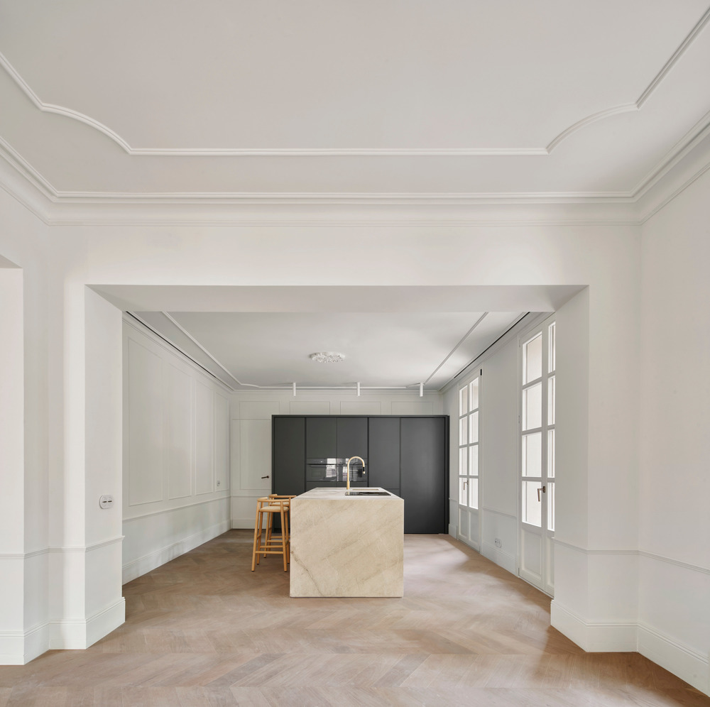 The OHLAB renovation project takes advantage of the complexity of existing buildings as a potential to generate unexpected spaces. The intervention solves each house with a distribution and individualized solutions, combined with the new common areas and connections and making up the union of both buildings. The final result is a single building that bases its uniqueness on the recovery of the historical essence and on the commitment to contemporaneity.