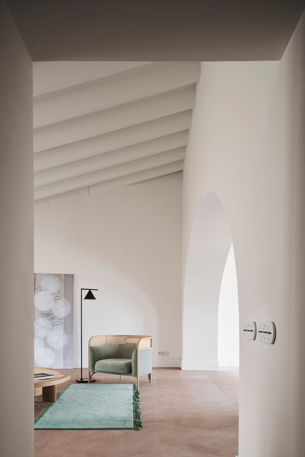 The selection of natural, noble, local materials, emphasising the Mediterranean essence, has been key. A simple palette of natural materials is continued throughout the project. It combines the restoration of historical elements. These materials are combined with the introduction of new noble ones, such as antique bronze pieces, local stones, mirrored cloths, porcelain details, local linen and cotton textiles.