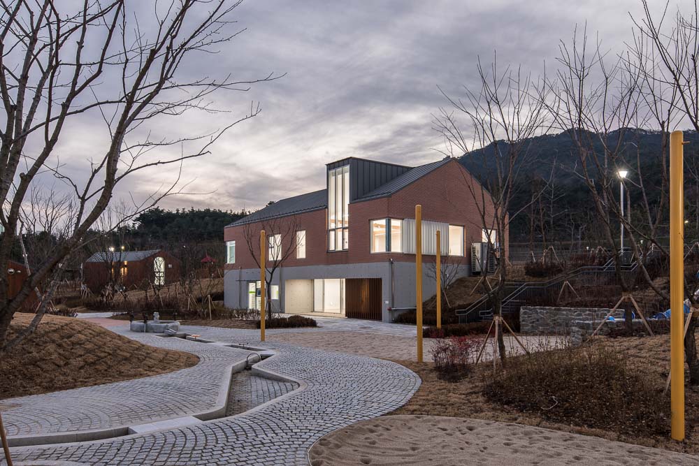 직교체계 안에 건축은 단순한 형태 언어로 공간을 구성하고, 절제된 재료를 드러낸다. 이는 다양한 레벨의 대지에 놓인 배경으로서의 건축을 위한 전제조건이다. 아이들이 형태와 색채보다는 주변 자연(빛, 바람, 물성)에 민감하게 반응하고 소통할 수 있도록 이끈다. 분산 배치된 프로그램은 내외부의 활동을 연계하며 그 독자성을 유지하기 위한 설계 전략이다. 다만, 대지의 중앙에 교육시설을 배치하여 놀이 활동 전반을 보호, 관찰할 수 있도록 배려하였다.