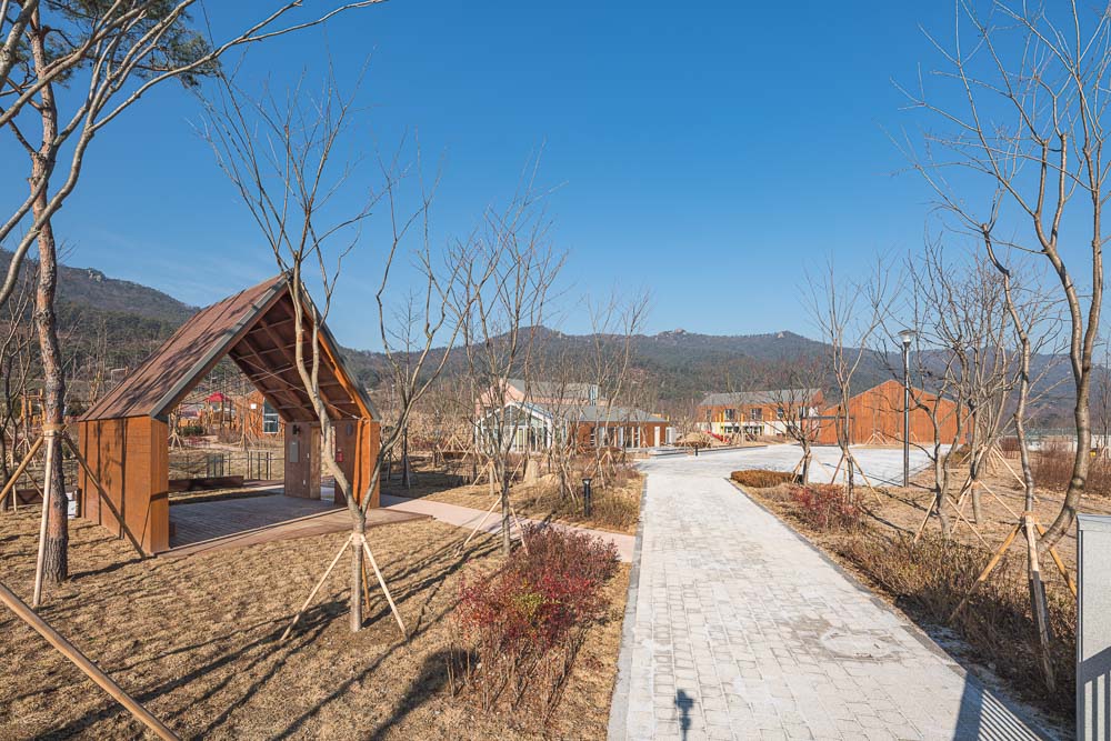 Distributed facilities are supposed to form both articulation and integration of outdoor space through a hierarchical combination of circulations and views. Located in the center of the facility, Teun-Teun Playground and Dinggul-Dinggul lawn hill reflects the behavior characteristics of children that ‘childrens try to climb over instead of detouring when they are stuck’. Surrounded by educational facilities, the outdoor space was designed at various levels to allow children to experience “challenge and adventure” under protection and observation. High slides, low natural tunnels, and the ground level transitional space will allow children to hide and run and find acceptable advantures with their peers.