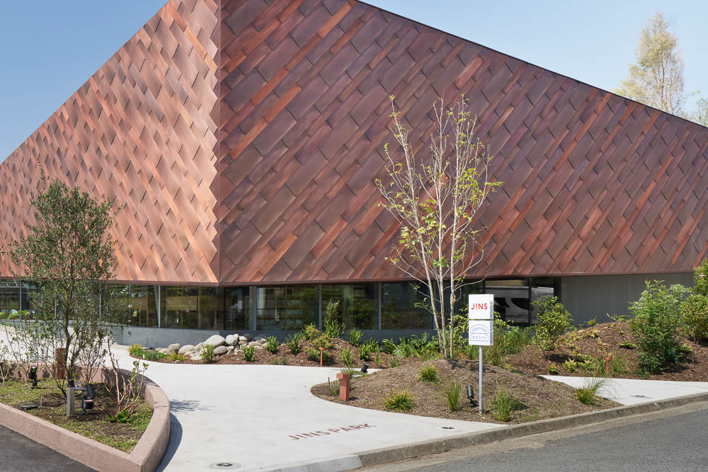 JINS PARK is designed to serve as a community plaza where bread and coffee as well as glasses are sold and neighbors can hold markets and lectures. Both inside and outside, there are relaxed spaces with no set function where a wide range of experiences and events take place, attracting a lively stream of community members. As the landscaping matures and the copper facade blends more fully into its surroundings, we hope the store will become part of everyday life in the neighborhood.