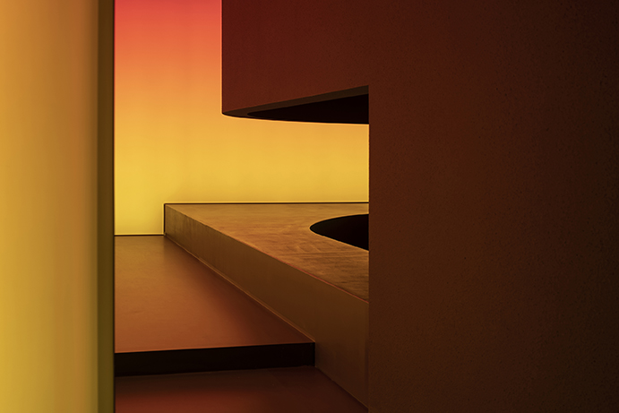 공간 전체에 곳곳이 배치된 빛(Cave light)은 색상 제어가 가능한 RGB 조명 통합 시스템을 사용하여 공간을 전혀 다른 시공간으로 변환 할 수 있도록 계획했다. 시간의 흐름에 따라 해가 떠오르는 새벽부터 노을지는 저녁까지의 인공 조명 설정은 태양빛이 없는 상태에서도 시간대를 인지할 수 있도록 하였고, 은은하게 퍼지는 빛은 고요한 감성을 주어 몰입이 가능한 환경을 만들었다. 이러한 빛은 붉은 색감의 거친 벽면과 약간의 광도를 가진 바닥, 매끈한 천정의 반사에 의해 유연하고 역동적인 분위기로 변화하여, 다양한 이벤트에 맞게 변화 될 수 있는 가능성을 가진다. 앞선 요소들은 이곳에서 이용자들이 시간을 보내는 방식을 완전히 새롭게 뒤바꿀 정도로 무모하지만 효과적인 방법이었다.