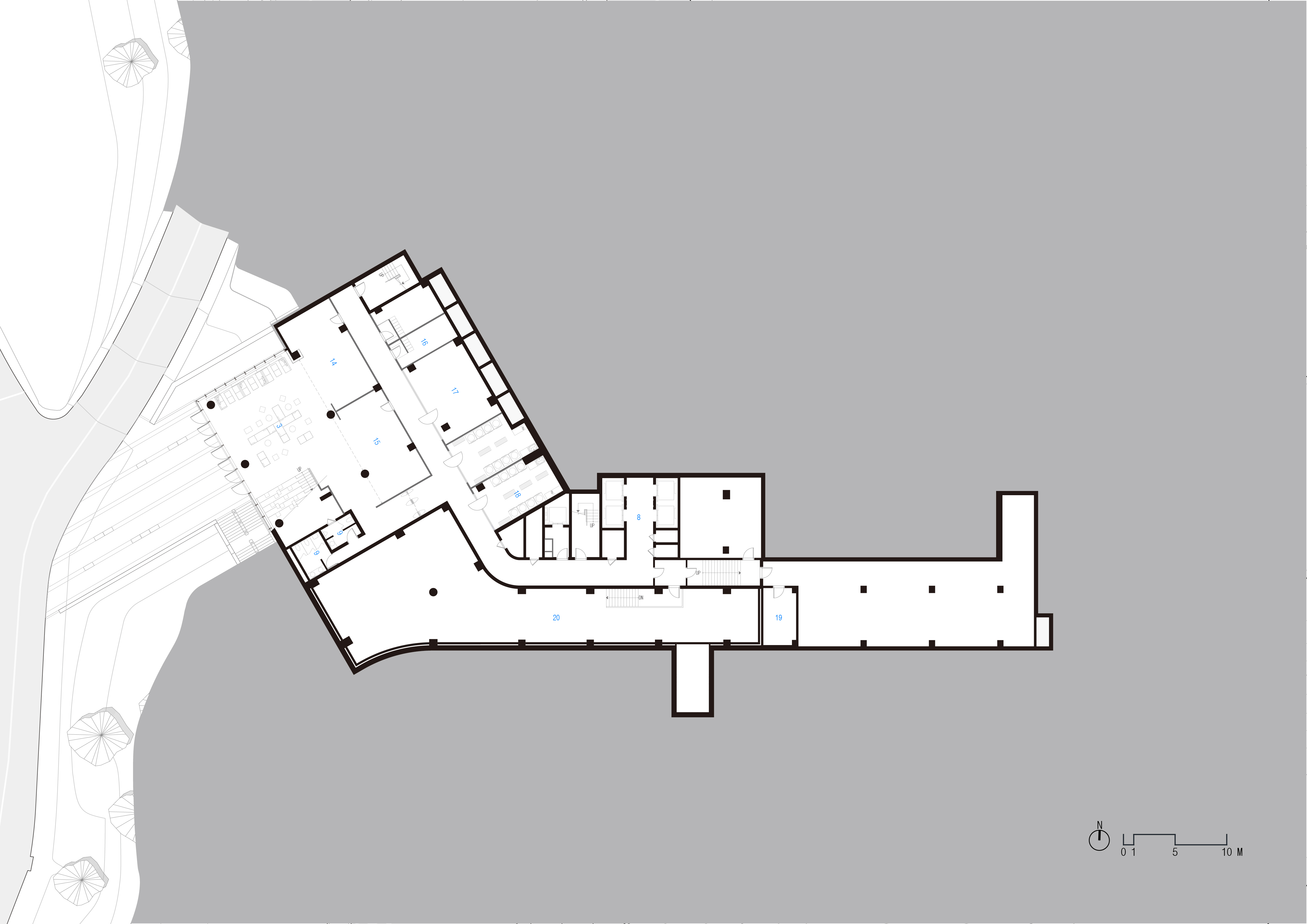 건축가는 기숙사의 공용공간을 효율적으로 구성하였는데, 커뮤니티 라운지를 기숙사의 핵심공간으로 설정하고 캠퍼스 여러 방향에서 커뮤니티 라운지로 접근이 가능하도록 계획했다. 주요 공공공간인 지하층과 1층에 걸쳐 계획된 트여있는 계단식 라운지는 높은 천장고, 밖을 향해 열린 커튼월 처리로 젊고 개방되며 역동적인 느낌을 준다. 이곳에서 계단식 라운지를 따라 올라가면 대학생들의 다양한 교류와 소통이 일어나는 다목적 모임공간으로 자연스럽게 이어진다. 주거공간, 성별 공간 분리는 별도의 매스로 구분된 것이 아니라 층별로 구획되어 나뉘어진다.