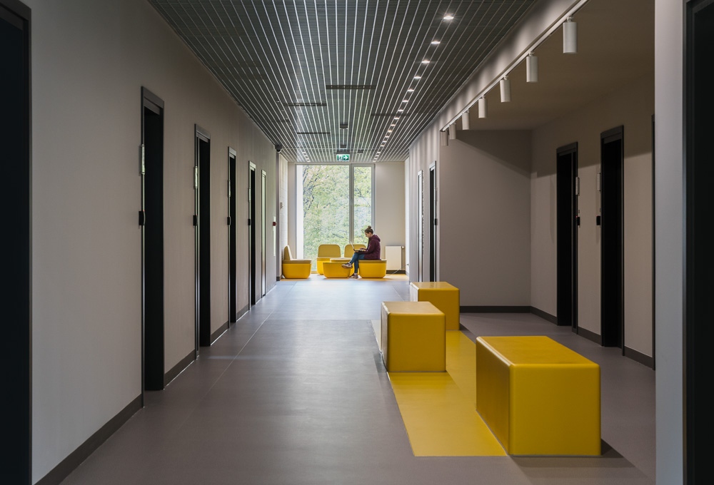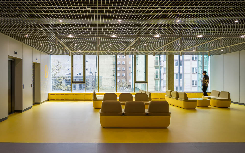 Dobra 55 has become a pioneering new home for language education where the University of Warsaw has consolidated their varying requirements into a single sustainable center of excellence. The new 42,000m2 building includes 92 ‘language labs’, 70 administrative rooms, 39 research and development rooms, 7 conference rooms, recreational spaces, a multimedia room that can accommodate 150 people as well as a library and reading areas, the project unites the universities’ linguistics departments into one location and brings a high level of transparency to the traditionally enclosed urban courtyard block, creating a green heart for the Powiśle riverbank district campus community.