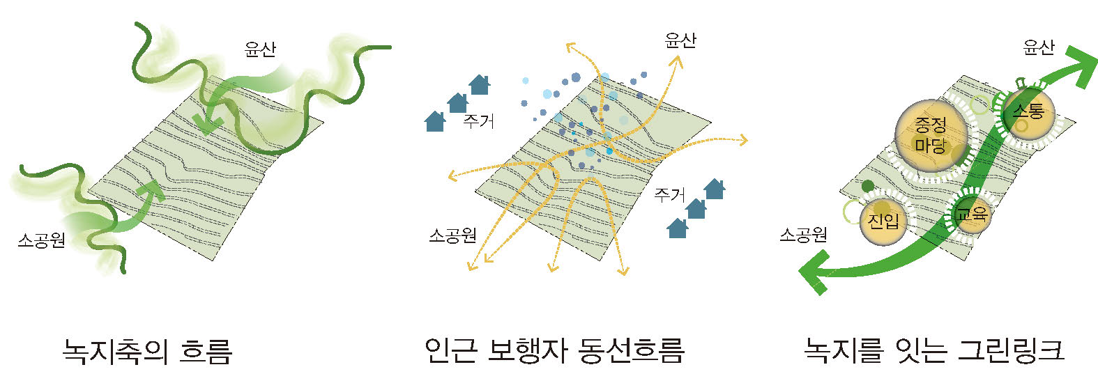 부산 윤산을 관통하는 터널 상부 유후 부지에 산을 따라 오르내리며 책을 읽는 도서관이 들어섰다. 금샘도서관은 윤산터널 근처에 공영주차장을 포함한 공공시설로, 동서 방향으로 15m의 레벨 차이가 있는 경사 지형에 세워졌다. 전면부는 소공원, 배면에는 윤산이 단단히 자리잡고 있다. 퇴계 이황의 ‘책 읽기는 산을 오르는 것과 같다(讀書如遊山)’라는 말에서 영감을 얻어 설계된 금샘도서관은 경사 지형을 활용한 동선과 산을 배경으로 독서와 다양한 활동을 할 수 있는 중정을 가지고 있다. 인근 주민들은 도서관에서 쉽게, 자연스럽게 만나며 이야기를 나누고 정보를 교환할 수 있다.
