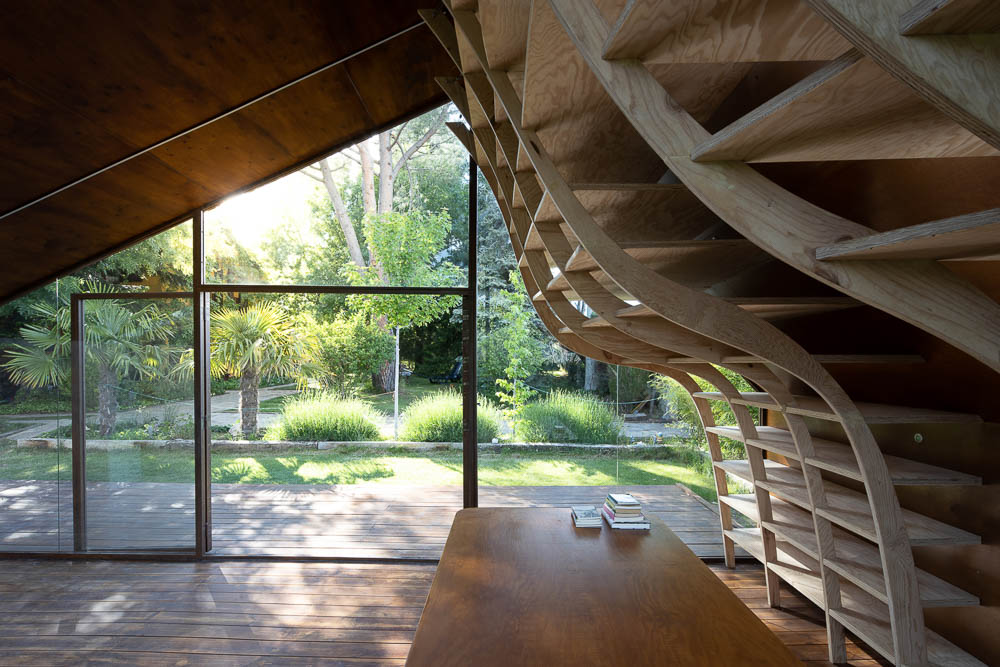 ‘작가의 오두막집’은 스페인 마드리드 북쪽에 사는 동화작가를 위한 작은 집이다. 건축주는 책에 대한 영감을 불러일으킬 수 있는 공간을 원했다. 정원의 중심에 있는 작가의 오두막집은 명상하거나 동기를 만들어줄 수 있는 공간이다.