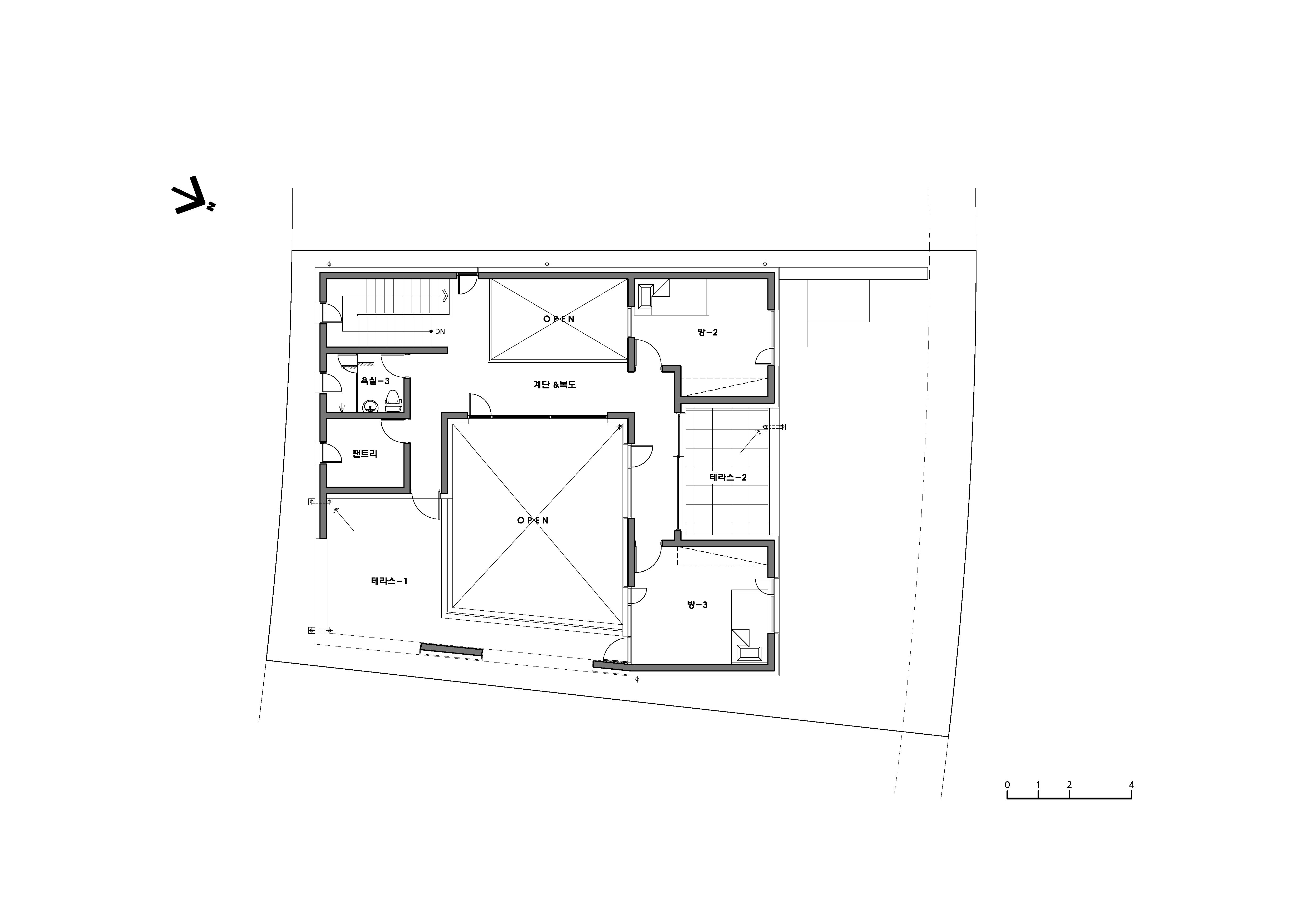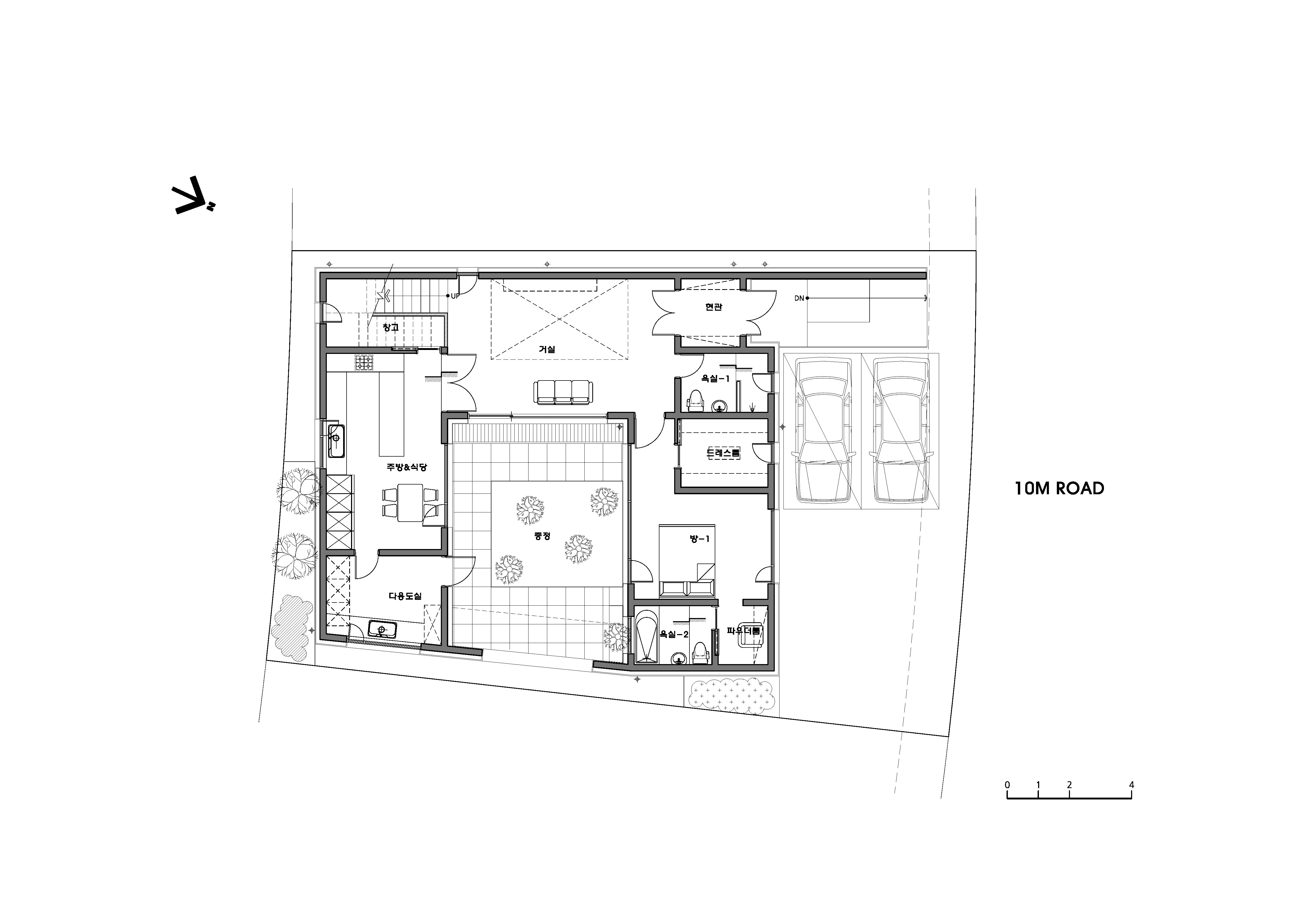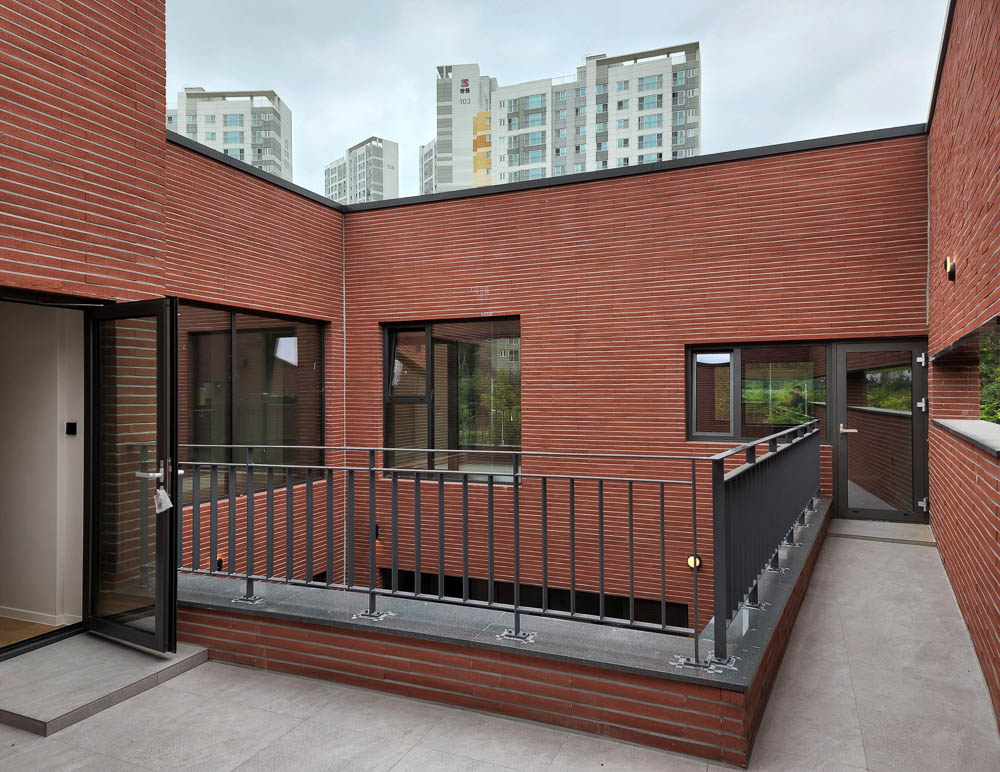 The essential part of the house is a courtyard. Courtyard is emptiness for communication and makes the attention to be shared in every spaces. Unlike the existing residential space where people only communicate in the living room, we made people to feel they are together though they are in the respective spaces. Also, as light, wind, snow and rain come into the exterior space where we could encounter by entering the building, we could feel the nature inside the house as well. It’s a space where kids who can see the plants grow by nature, not by an artificial installment, and plants grow together.