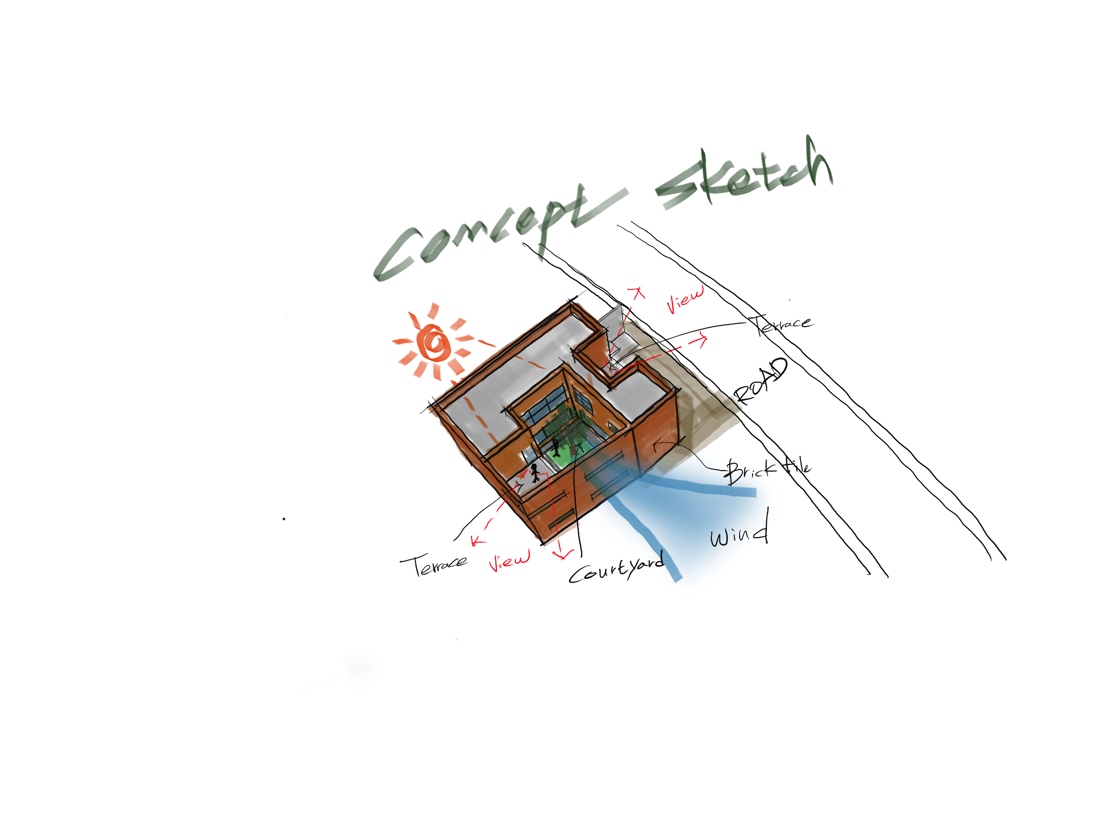 이 집의 핵심 공간은 중정이다. 중정은 소통을 위한 비움으로 모든 공간에서 시선을 공유할 수 있도록 한다. 거실에서만 소통하던 기존 주거공간과 달리 각자의 공간에서도 함께 있다는 것을 느낄 수 있도록 했다. 또한, 건물을 들어서면 만나는 실외공간으로 빛, 바람, 눈과 비가 들어와 집 안에서도 자연을 느낄 수 있다. 인공적인 장치가 아닌 자연으로 식물이 자라는 것을 볼 수 있는 아이들과 식물이 함께 자라는 공간이다.