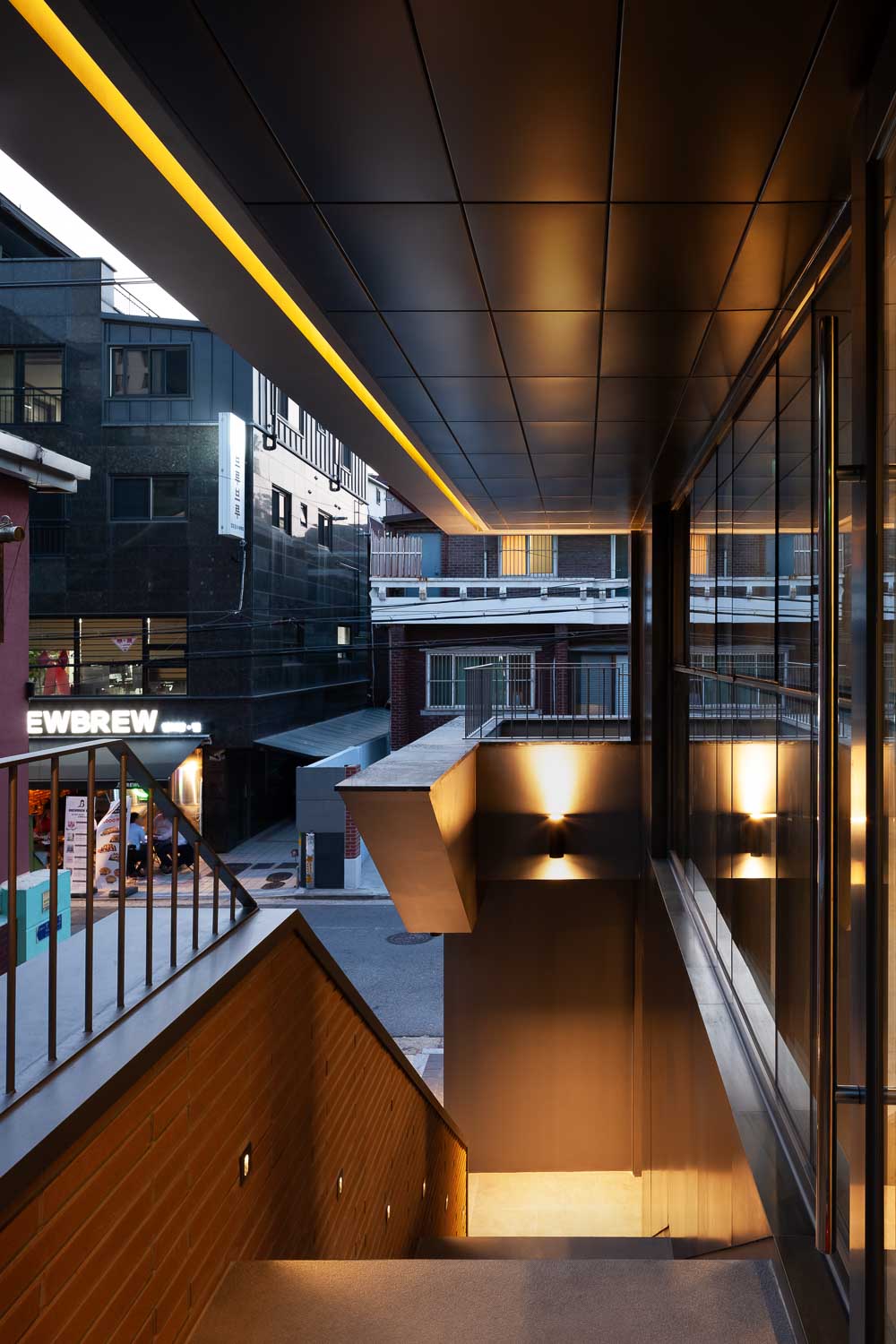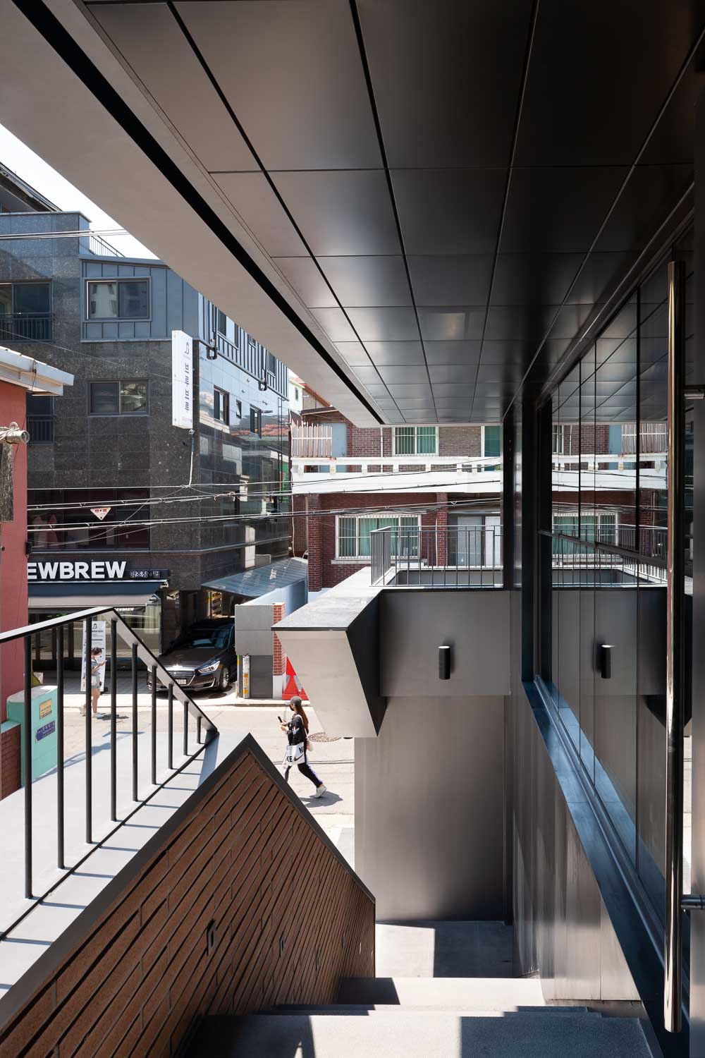 외부로 열린 계단과 2층 외부 발코니는 내부 활동이 바깥쪽으로 자연스럽게 흐르는 일상적 풍경을 노출하며, 공공장소와 낮은 강도로 접촉하게 한다. 낮은 강도의 접촉은 또 다른 형태의 접촉이 일어날 수 있는 상황을 만들어낸다.