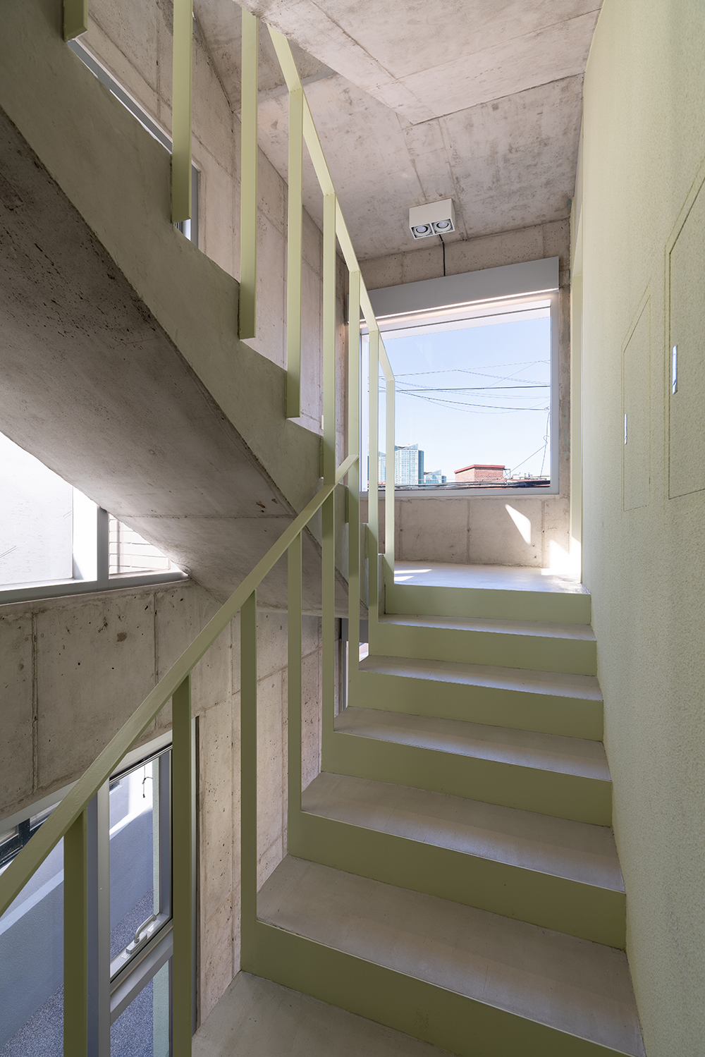 무엇보다도 라임라임의 특징은 라임(Lime) 색상의 과감한 사용이다. 파리의 골목에서 느꼈던 클라이언트의 감성과 기억 한편에 컬러풀한 벽들이 존재했기에 수용할 수 있었다고 생각한다. 20년 가까이 신축이 없었던 골목의 낡고 칙칙하게 보일 수 있는 벽돌 건축물 틈에서 상큼한 뉴비가 등장한 것이다. 다소 강렬하지만 그러한 에너지와 활기로 인해 오래된 동네인 당인동에도 새로운 바람이 불길 바란다. 이미 골목의 오래된 주민들은 우리의 우려와 달리 뉴비를 반갑게 맞아주고 관심 가져주고 있으니 참 다행이다.