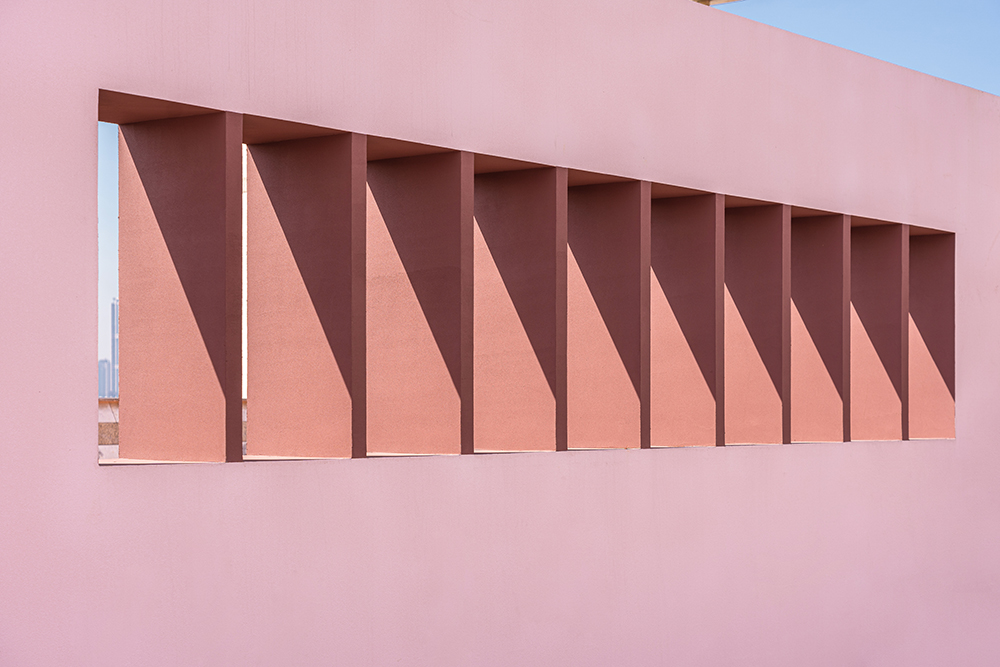 이 거리를 어떻게든 활성화하려는 노력이 우리 말고도 오랫동안 지속되었나 보다. 좌측 건물은 노란색 벽, 우측 건물은 파란색 창. 파란 하늘과 건축물 앞 푸른 나뭇잎까지 온갖 색이 가득한 이곳에 남겨진 것은 단연 붉은 기운이 있는 색이었다. 존재감을 드러내고 좀 더 입체감을 표현하기 위해서는 톤온톤(Tone-on-tone)의 감각을 적극적으로 사용하는 것으로 클라이언트에게 제안, 과감하게 칠을 해 나갔다. 우리는 가로에 대응하는 가장 사업성 높은 방법으로서 기존 필로티 주차장을 옥외로 위치 이동시키고, 대신에 그 공간을 증축하는 것과 엘리베이터를 새롭게 설치했다. 건축물 규모 및 가로의 특성상 각 층 따로 임대를 둘 가능성이 크다는 것을 감안하여 엘리베이터 및 로비의 위치를 기존의 건축물 후면 계단실과 최대한 가까운 곳에 배치했고, 건축물로 진입하는 주 출입구의 위치를 1층 임대공간의 손실 및 간섭이 없도록 해야 했다. 선의 두께감과 간격, 루버의 각도에 따라 면으로 보일 수 있는 깊이를 바탕으로 한 선과 면의 컴포지션은 마치 핑크색 암염(Halite)이 떠오른다. 하라이트 플라츠는 화창한 여름날 푸른 나무와 파란 하늘로 보색대비를 이루고, 노란 낙엽과 하얀 눈발에도 어울리는 생동감 넘치는 유기체로, 좀 더 활발한 가로를 만드는 데 보탬이 되길 희망한다.