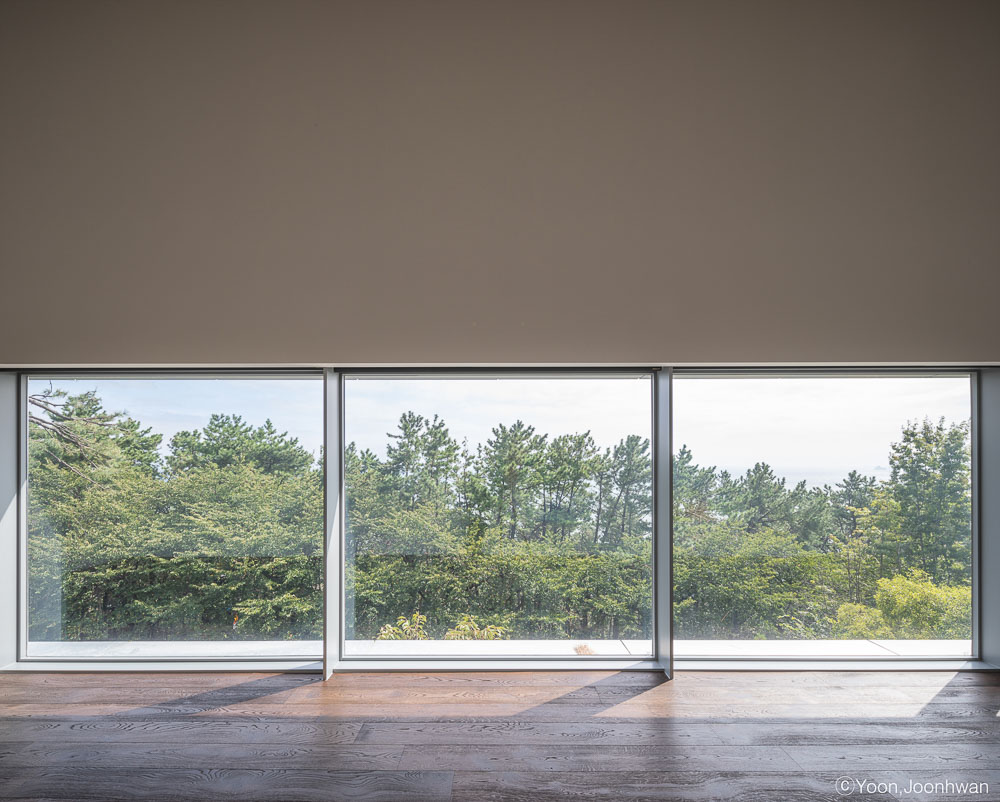 The extension part consists of three internal spaces and two external spaces. A park forest that overlaps with the sea, a linear consultation room that faces this landscape and is connected by a gap, an exhibition room that opens dramatically into the forest, but avoids light and raises the floor height, an employee space where the lower height of the existing building and the higher floor height of the extension are overlapped, and a 2.5m high adjacent site and a yard built in between. The design prioritized spatially combining architecture and the surrounding environment, existing and extension, art and architecture, and establishing a relationship that is natural and does not reduce tension. The interior space is neutralized so that the space becomes an artistic device in relation to the exhibited works. In addition, by processing it in a simple way rather than putting a spatial change in place, it does not interfere with the visual appreciation of the work. The scenery seen at the beginning and end of the high and deep exhibition room creates a space where tension and relaxation are repeated by creating a space for appreciation.