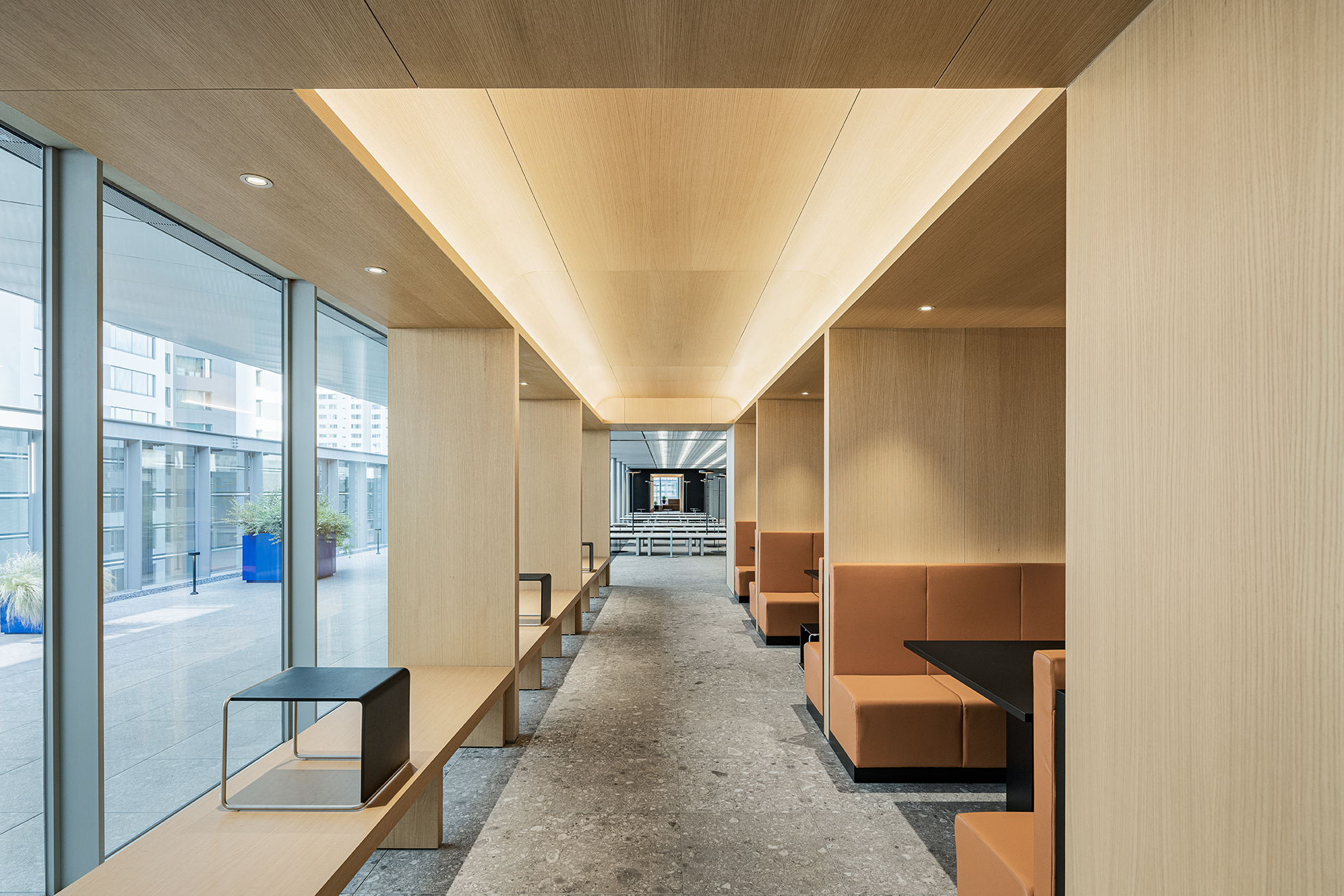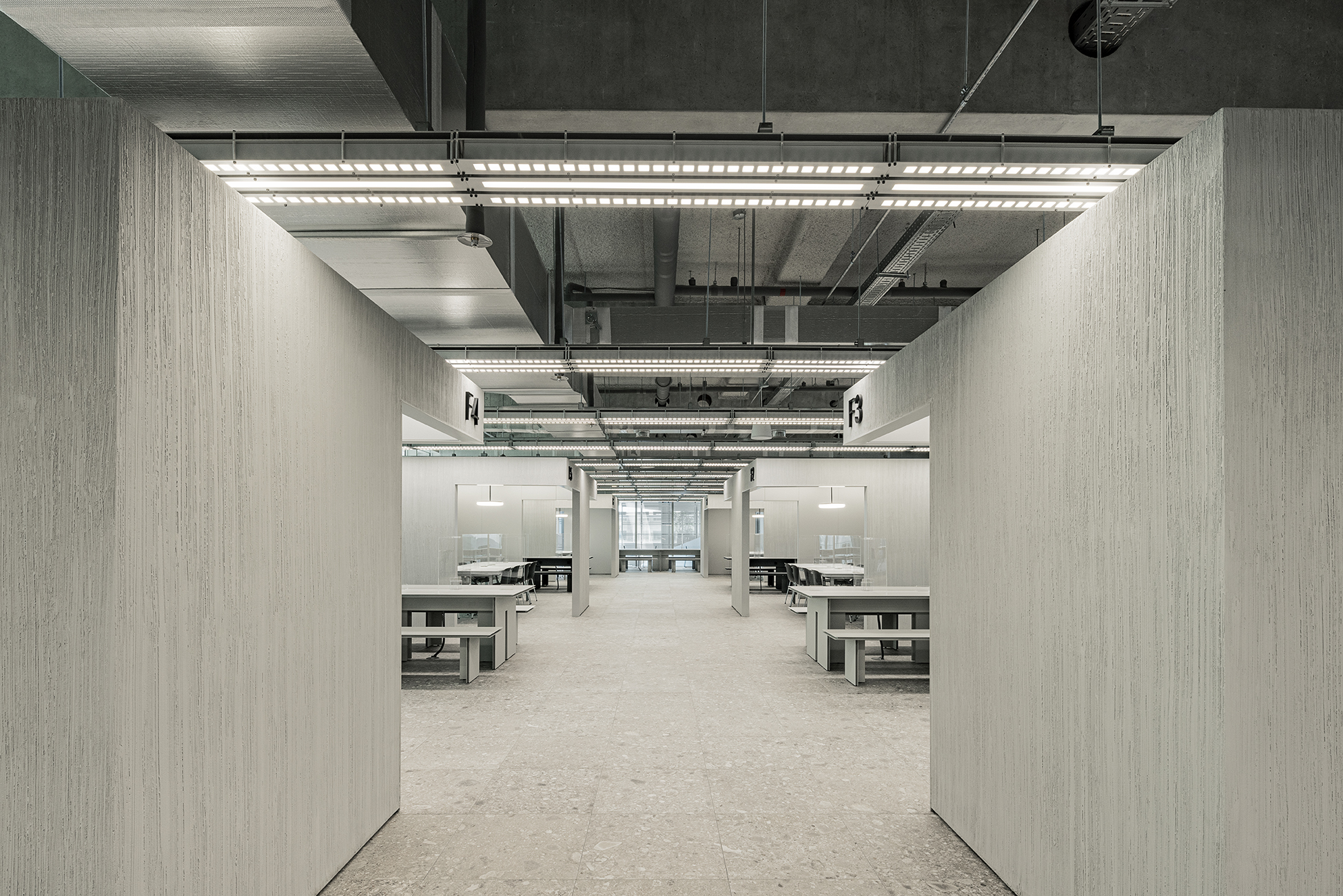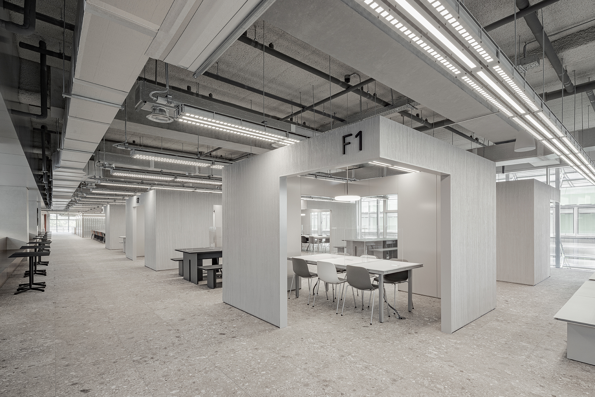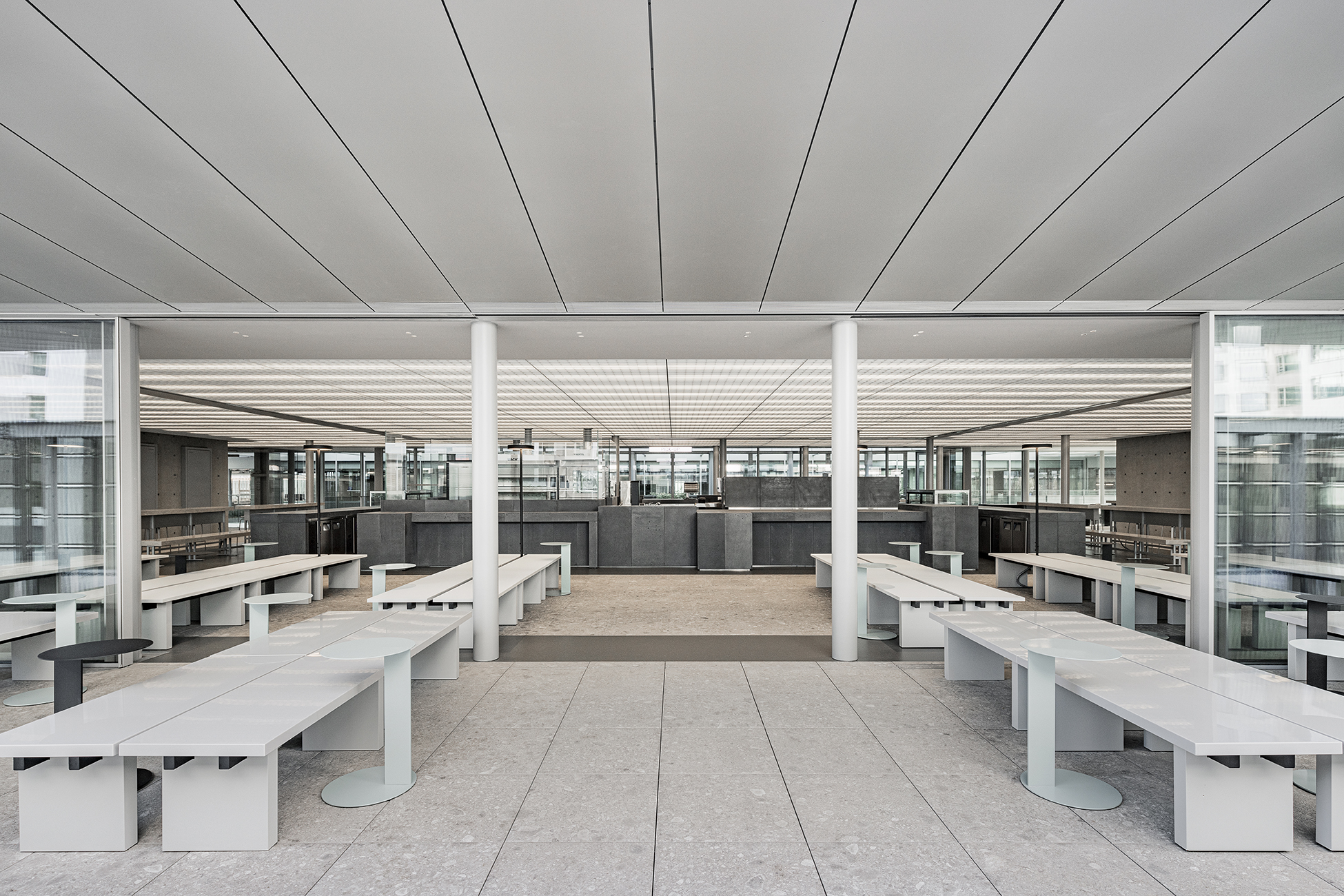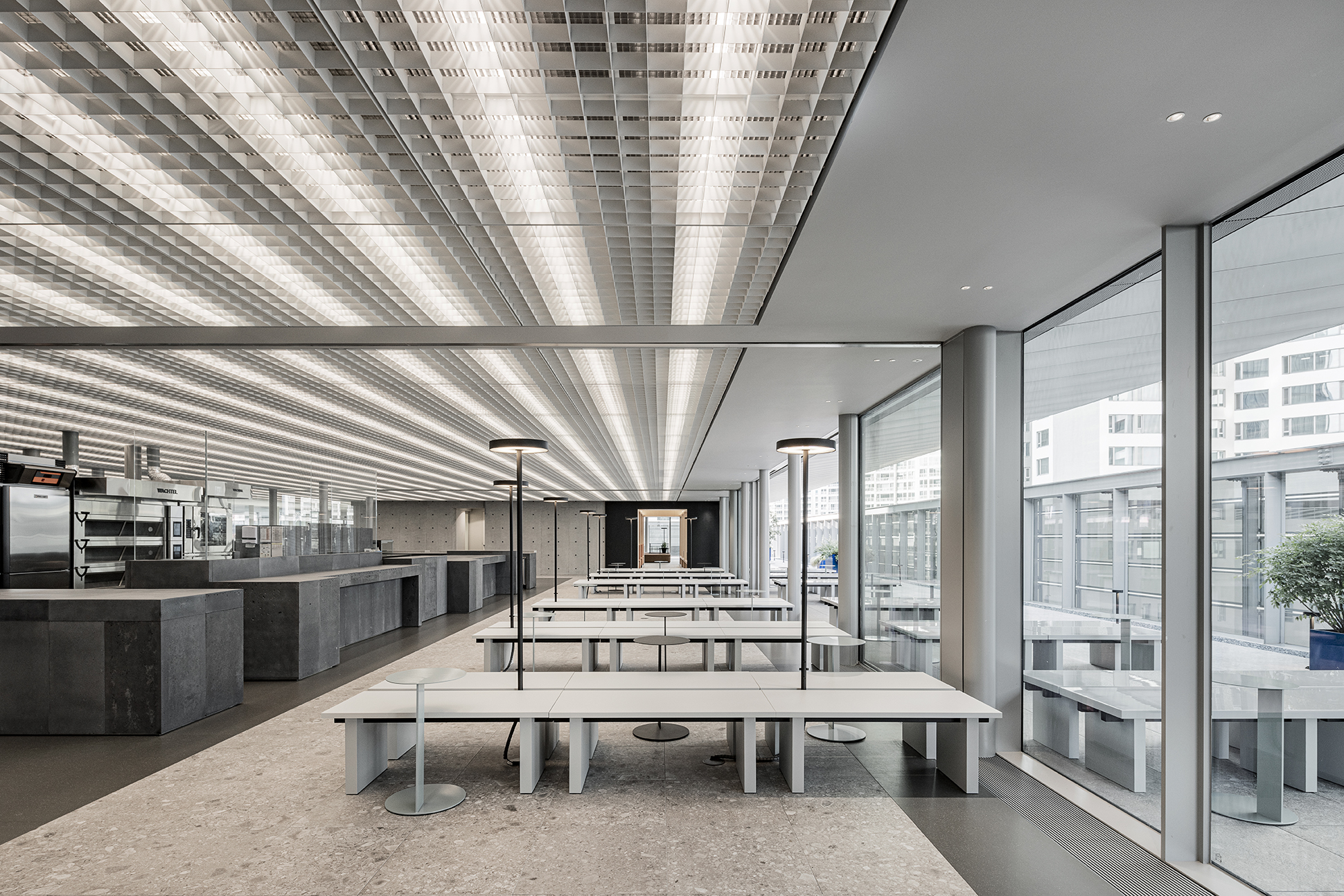The main design strategy was to design essential functional kitchen booths, washing & return stations, and seating spaces in consideration of the user's process in a hygienic and systematic manner. In addition, in order to provide an environment optimized for eating and working and a space that suits your taste, various types of seating spaces were designed in restaurants and cafes around the core, and appropriate sizes and details were continuously reviewed for both meals and work.