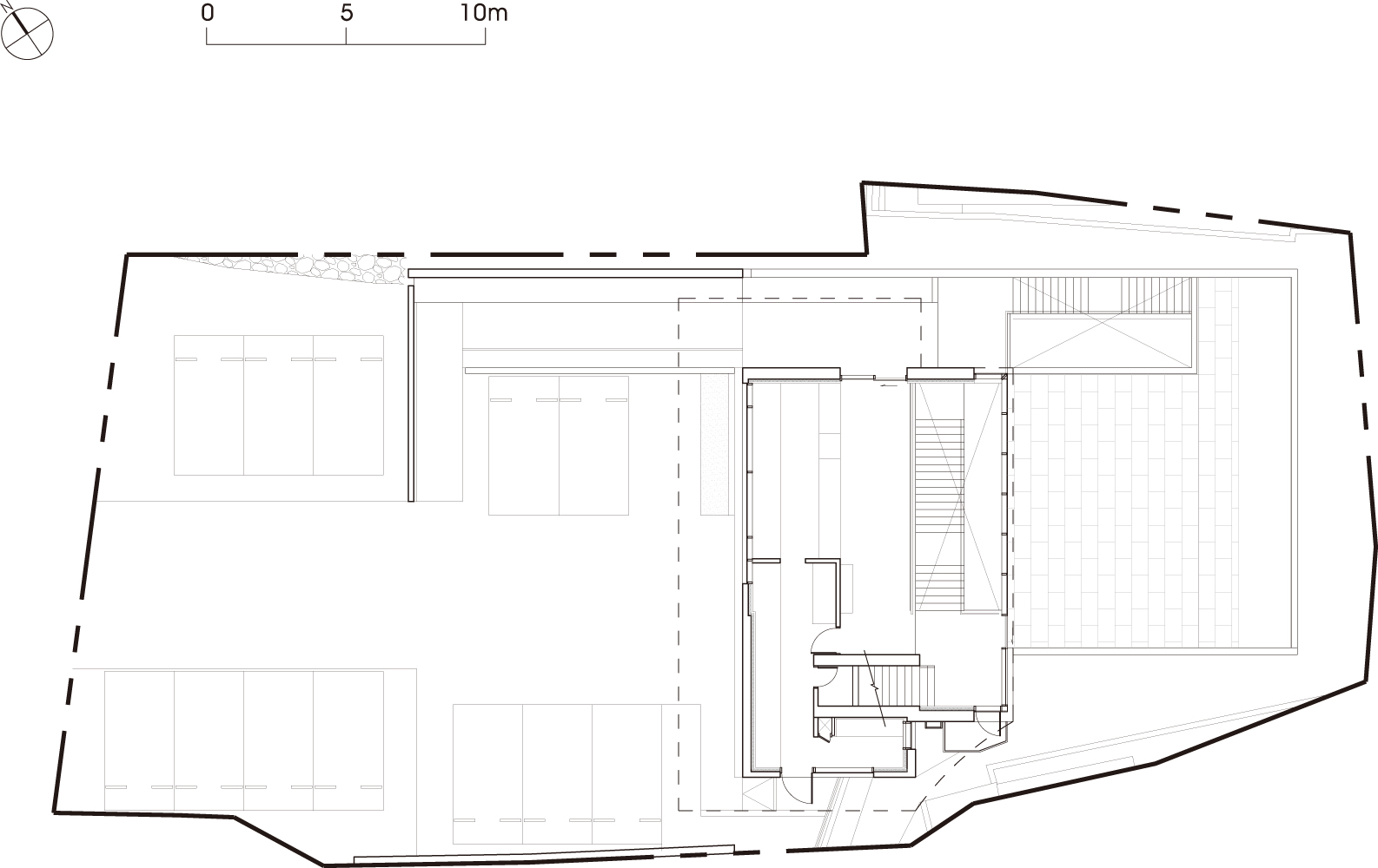 The site is two lots, facing the fishing village and the main road behind it, and there is a height difference of 8m. Even though it is a staircase, I wanted the village to be connected by making a way to the main road 8m above the village. The volume of the building was determined in such a way that two floors are vertically alternated and combined so as not to damage the atmosphere of the village. The materials were designed to match the rough concrete texture of the breakwater, the village road pavement, and the tetrapod, with Euroform exposed concrete for the lower two layers and pine plywood exposed concrete for the upper two layers.