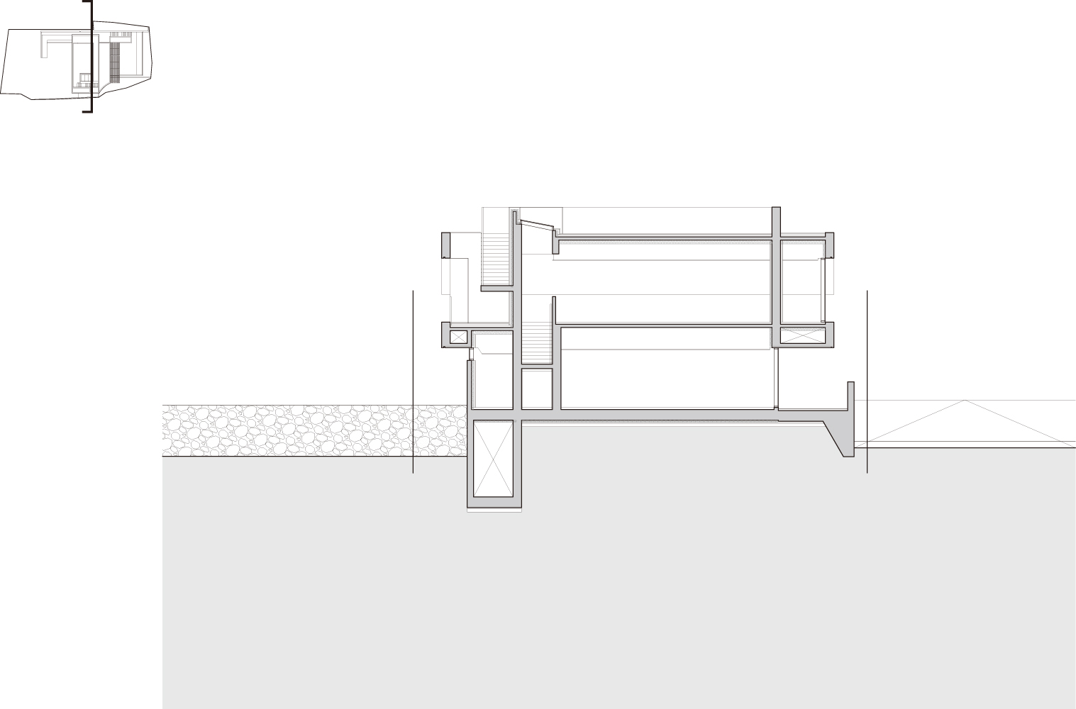 대지는 두 필지로 어촌마을과 뒤쪽 주 도로에 접하고 8m 높이차가 있다. 비록 계단이긴 하지만 마을에서 8m 위에 주 도로로 이어지는 길을 내어주어 마을과 함께하고자 하였다. 마을의 분위기를 해치지 않게 두 개 층씩 수직으로 엇갈려 결합하는 방식으로 건물의 볼륨을 결정하였다. 재료는 방파제와 마을의 도로포장, 테트라포드의 거친 콘크리트 질감에 맞춰 하부 두 개 층은 유로폼 노출콘크리트, 상부 두 개 층은 송판노출콘크리트로 계획하였다.