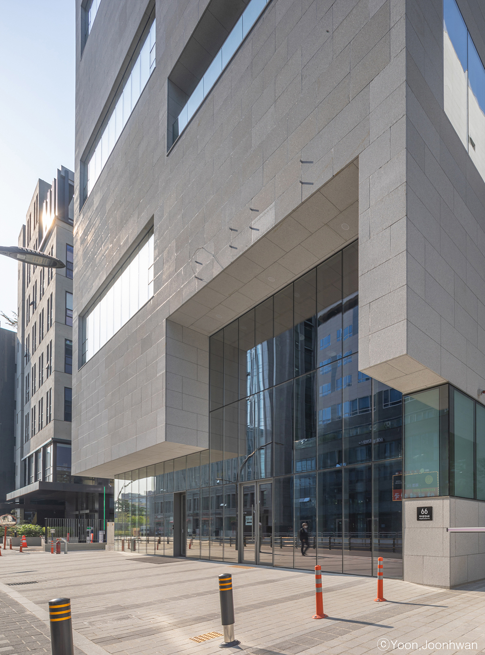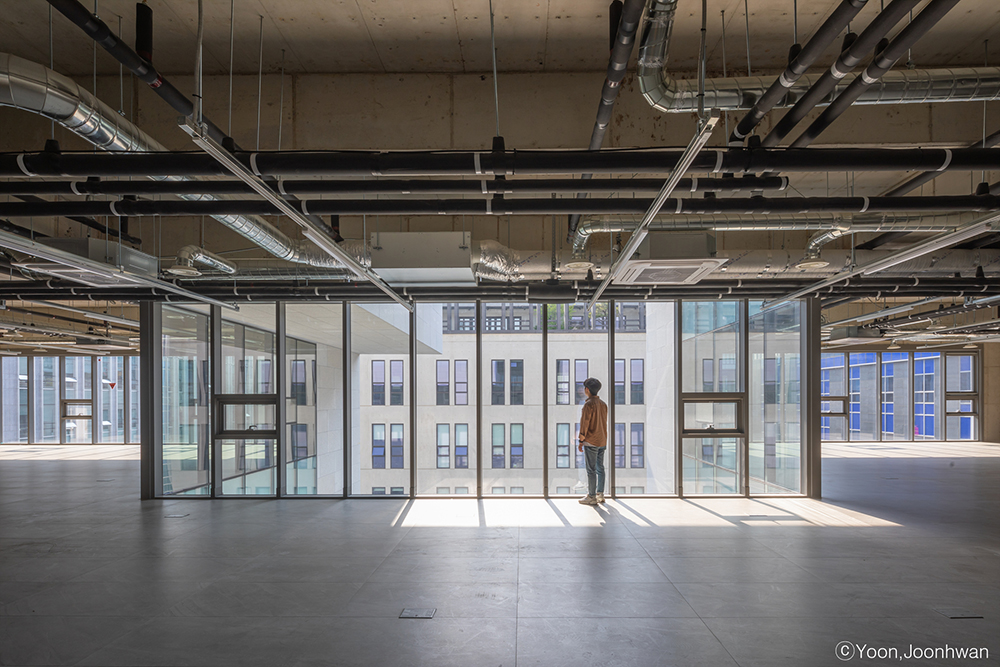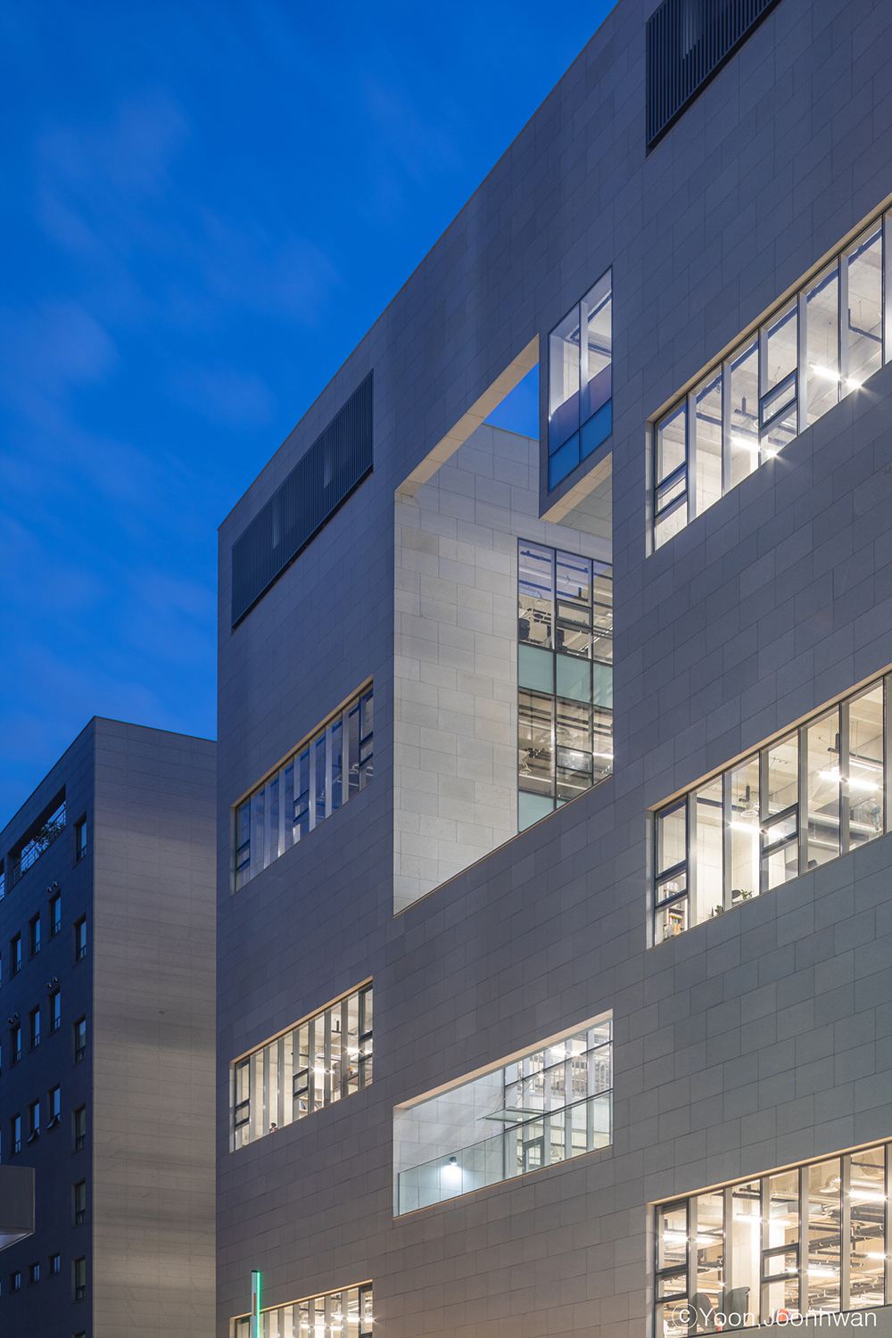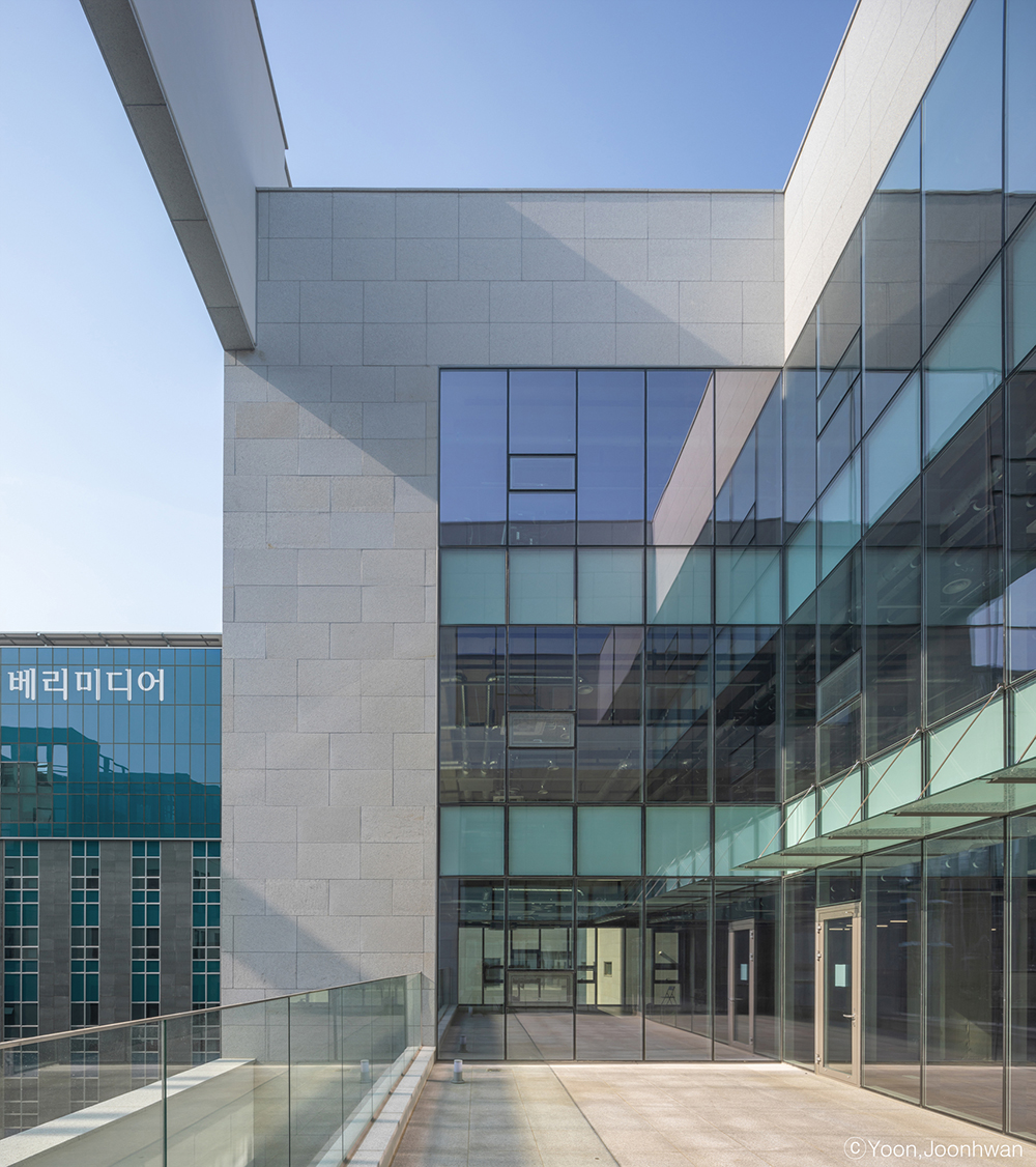 Corporate headquarters should actively promote corporate culture externally, and functionally fulfill the role of a space for research and work. In particular, it is an important architectural strategy for clients to recognize the brand image of MASS C&G, a design company, through the office building. The design was approached with this in mind. The site is located on a back road of the Magok district, and is adjacent to a pedestrian-friendly road formation section with a width of 2m on the left. This means that the minimum conditions are given to avoid the stuffiness of existing roadside buildings.