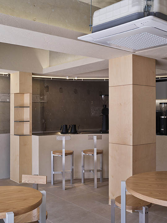 We wanted the formative cylindrical mass to stand out visually when looking from the outside through the production lighting using aluminum plates, and the whole glass exterior was designed to unify the relationship between the inside and the outside space (form/texture/color/atmosphere). Therefore, we want to increase customer satisfaction through a unique experience with a space composition that is clearly differentiated from other cafe designs near by.