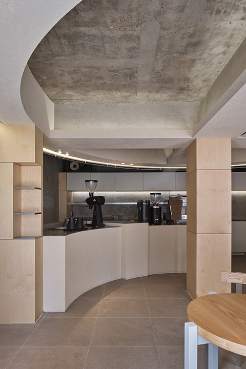 We wanted the formative cylindrical mass to stand out visually when looking from the outside through the production lighting using aluminum plates, and the whole glass exterior was designed to unify the relationship between the inside and the outside space (form/texture/color/atmosphere). Therefore, we want to increase customer satisfaction through a unique experience with a space composition that is clearly differentiated from other cafe designs near by.