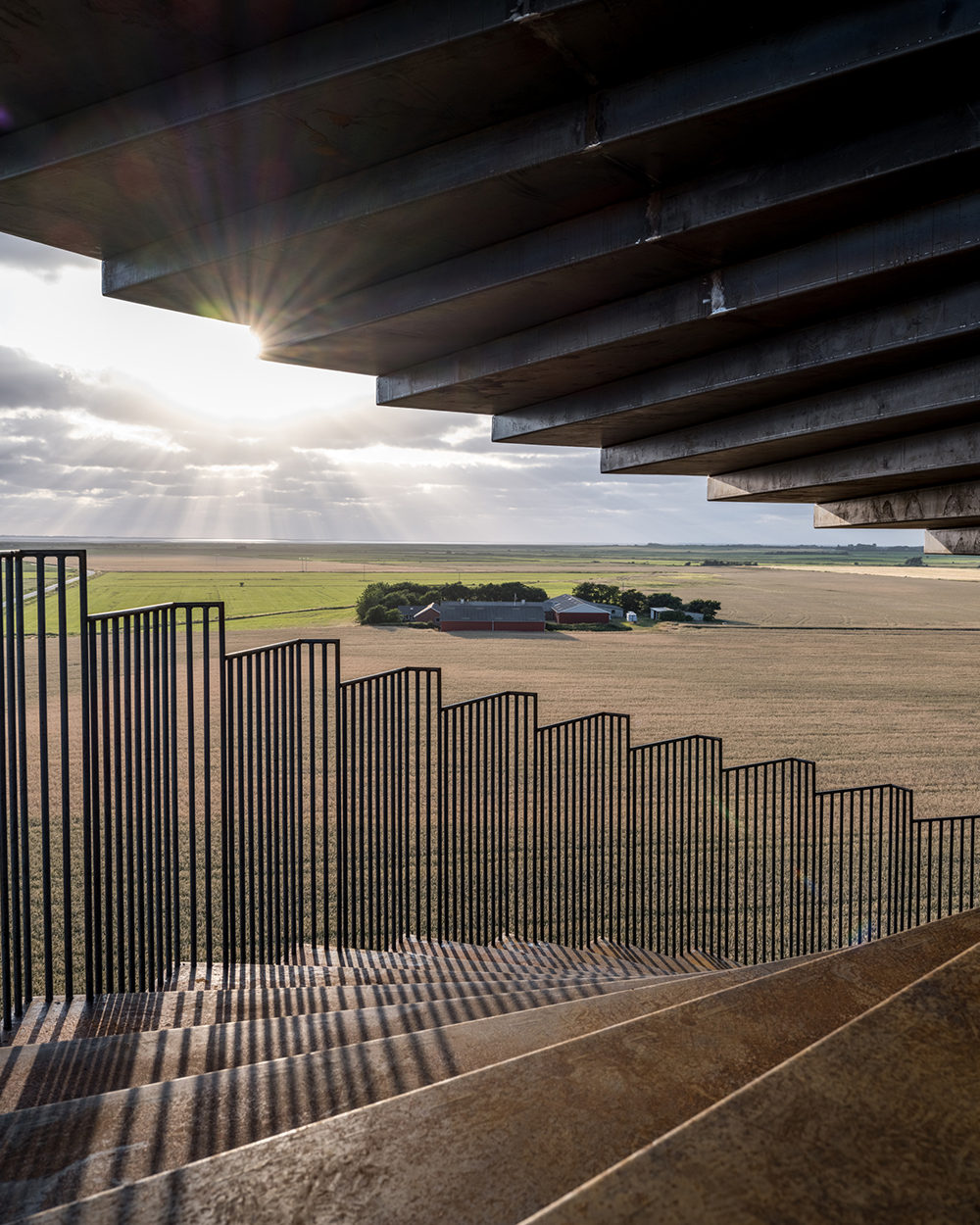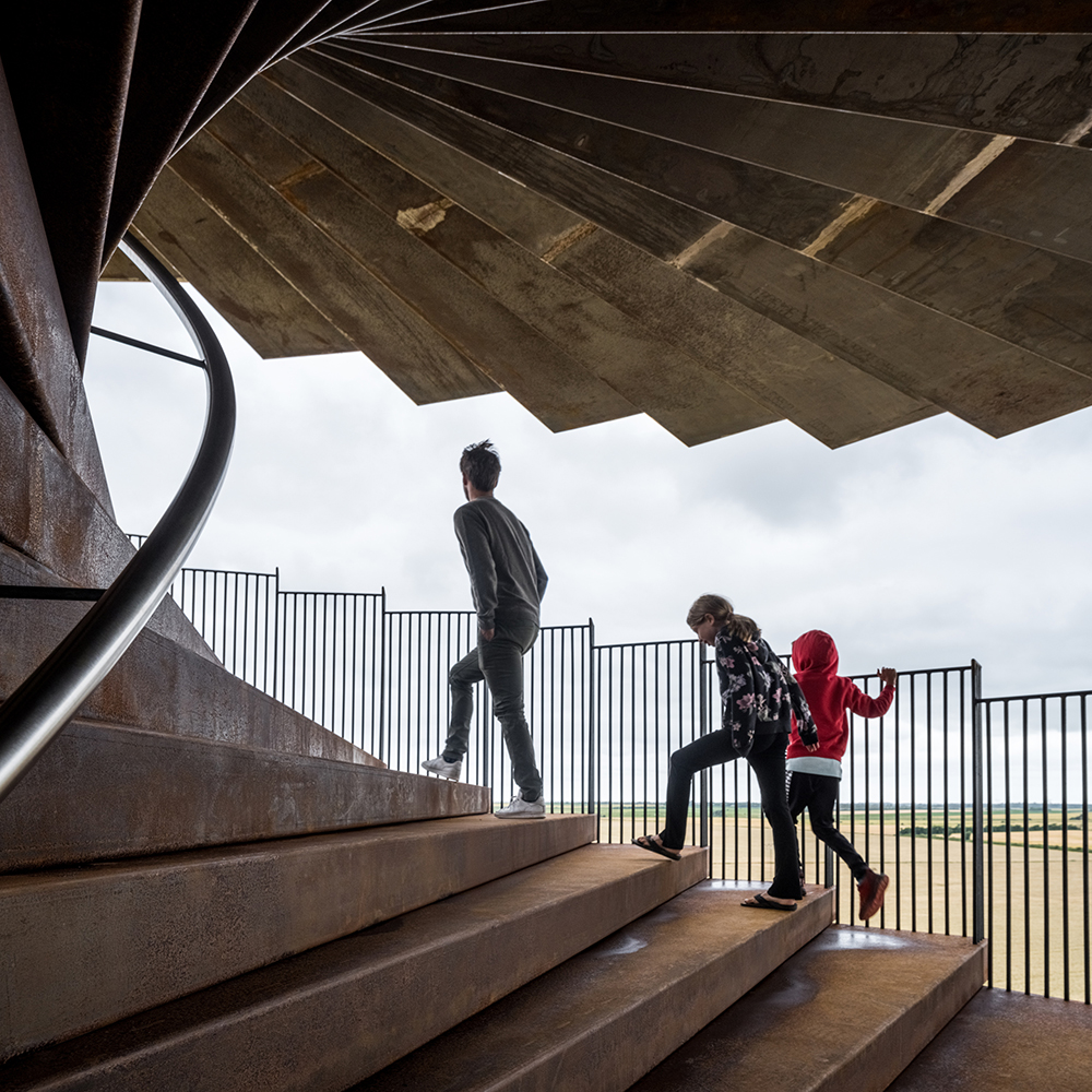 The 25m high Marsk Tower – translated as “Marsh Tower” due to its location in the marshlands of Denmark’s popular National Park, Wadden Sea, Southern Jutland – offers expansive views of the natural environment. Appearing as a sculptural art object rising out of the landscape, Marsk Tower will function as an observation lookout that facilitates community as a key tourist landmark. A wheelchair accessible tower, an elevator located in the core of the tower provides access via the ground level ramp. The tower is inspired by a human DNA string with two different staircases – one for walking upstairs and one for walking downstairs, both give visitors the ability to look out and experience nature from every angle. The tower’s simple design, defined by Corten steel materiality, exudes a natural aesthetic that blends with the surrounding environment while simultaneously becoming a new, visible destination in Denmark.