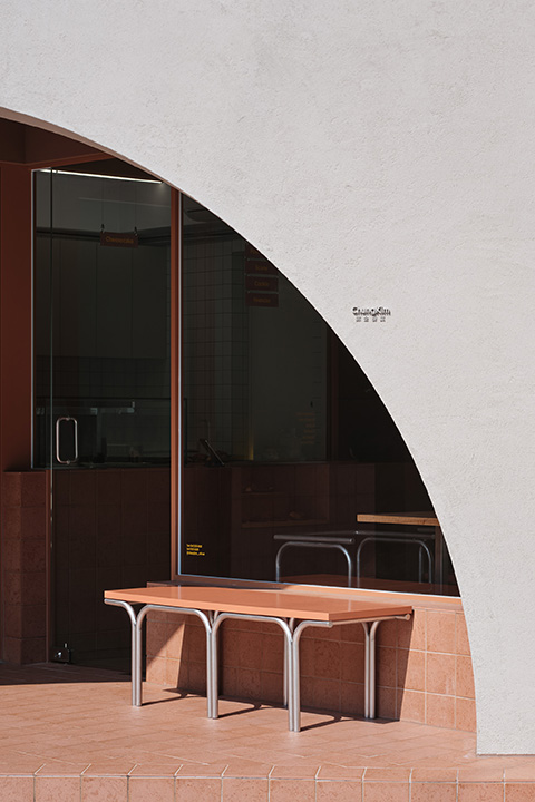 일부 개방된 필로티 공간은 내부로 자연스럽게 이어져 구매와 머무를 수 있는 공간을 제공하고, 여기서 자유로이 움직이는 손님들은 다른 사람의 시선을 사로잡습니다. 공간에서 가장 깊숙한 주방의 창은 빵의 제조 과정을 집중하여 볼 수 있도록 그 이외의 것은 흐릿하게 보여줍니다.