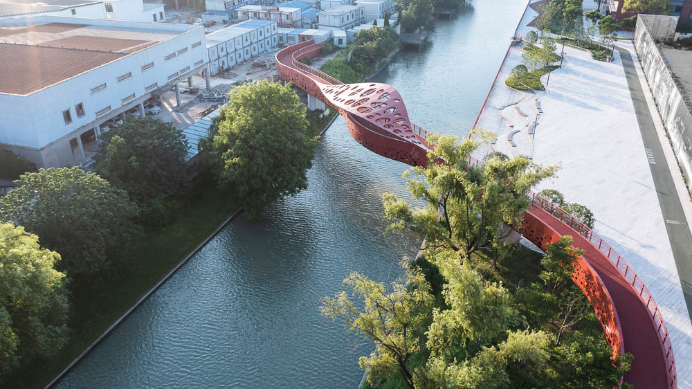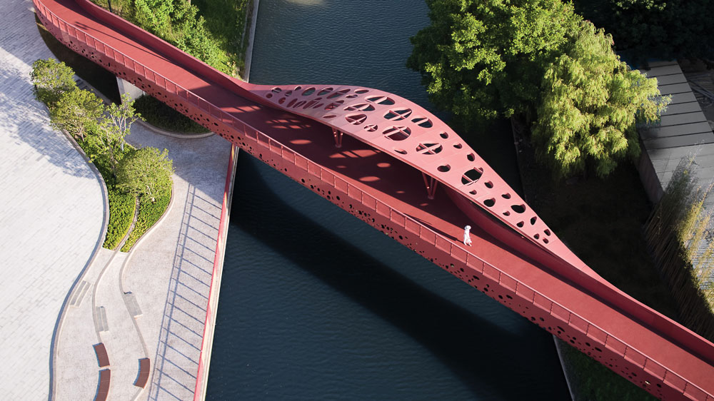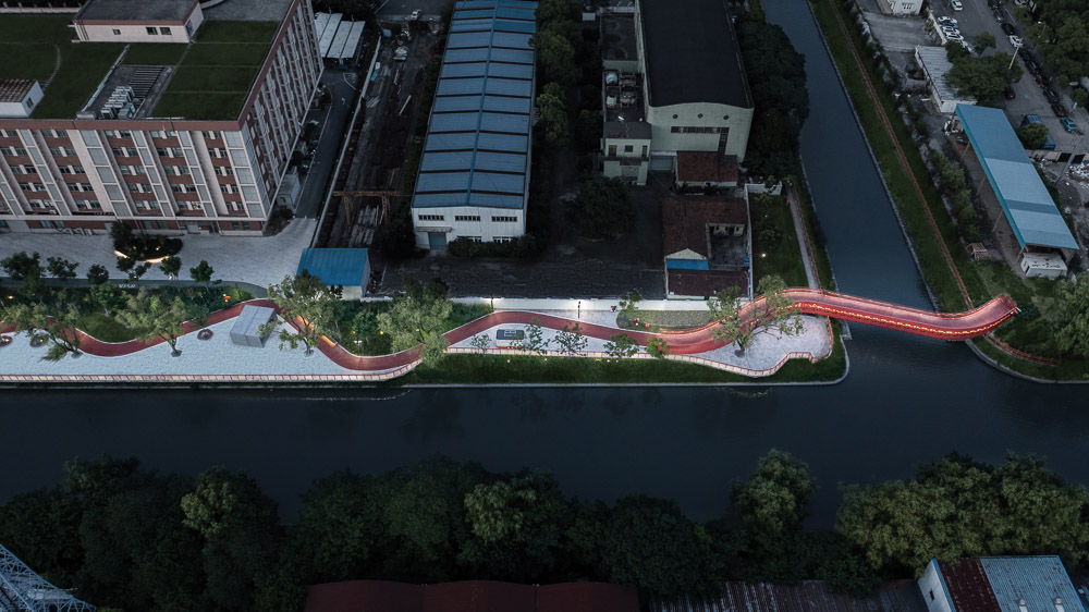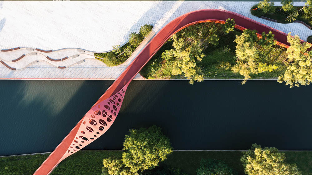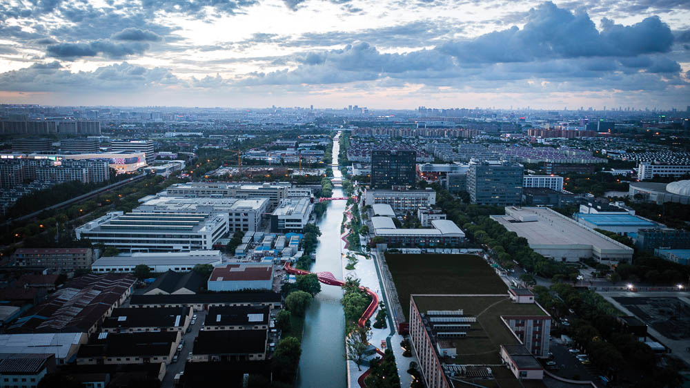 The Minhang Riverfront is an ambitious story of urban regeneration. A mere 24months ago it was a decrepit overgrown riverfront faced by low grade industrial warehouses with remnants of paths, industrial and disused utilities evidence of many years of change and neglect within the district. Today it has become a vibrant mix of commercial, technology and institutional uses connected by SPARK’s urban park, an open space armature around which existing developments have been upgraded. SPARK’s proposal creates a 750m long recreational environment that meets the government and community’s desire for a sense of place that facilitates better pedestrian connections and promotes a more sustainable living environment. SPARK’s design concept used the single cell Diatom as a recurring motif. Diatoms are single cell algae of many beautiful forms that naturally clean water. We have abstracted the Diatom form into two- and three-dimensional objects that animate the river embankment telling the story river and environment in regeneration. The design of the riverfront includes continuous green ribbons of walking, jogging and bicycle tracks and 3 pedestrian bridges that link the residential, education and business communities together. The landscape was designed by layering four distinct zones that enhance views create and for the first time accessibility to the river. The linear zones take on an abstracted riparian form and house innovative pockets of activity with lawns, cafés, a sports park and event plaza. SPARK designed a bespoke wayfinding and furniture strategy that contributes to the storytelling and accessibility of the transformed environment.