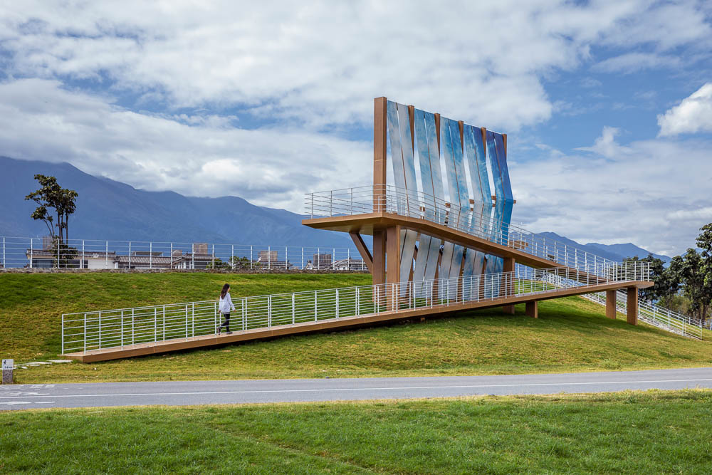 건축가는 현지 문화인 다리바이족 전통의 돛단배에서 영감을 받았다. 대지의 높이 차이를 이용하여 조성된 보행 시설물은 얼하이 호수와 마주 보고 있으며, 호수공원으로 이어지는 슬로프 구조다. 둔덕을 따라 반지하에 호수공원의 쉼터와 관광안내센터 역할을 하는 공간을 조성했으며, 땅과 녹지가 지붕의 역할을 한다. 바로 이 위에 높이 9m, 너비 14m의 돛 설치물이 있다. 돛은 바이족의 전통 염색 패턴으로 표현됐으며, 파란색과 흰색은 화가 달리(Dali)의 하늘에서 따온 것이다. 돛을 둘러싼 Z자 경사 보행로는 호수공원과 이 반지하의 쉼터를 연결하는 중요한 동선이다. 얼하이 호수 주변의 몇 개 되지 않는 높은 곳의 녹지공원이며, 이 끄트머리에 서면 얼하이 호수의 풍경이 내려다보인다.