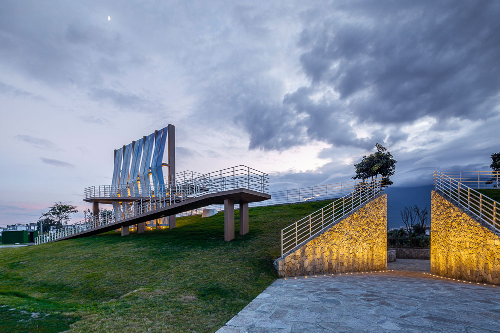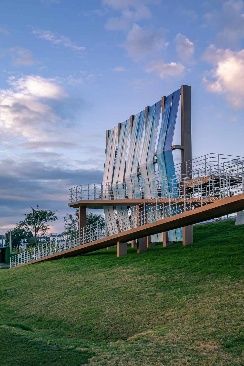 건축가는 현지 문화인 다리바이족 전통의 돛단배에서 영감을 받았다. 대지의 높이 차이를 이용하여 조성된 보행 시설물은 얼하이 호수와 마주 보고 있으며, 호수공원으로 이어지는 슬로프 구조다. 둔덕을 따라 반지하에 호수공원의 쉼터와 관광안내센터 역할을 하는 공간을 조성했으며, 땅과 녹지가 지붕의 역할을 한다. 바로 이 위에 높이 9m, 너비 14m의 돛 설치물이 있다. 돛은 바이족의 전통 염색 패턴으로 표현됐으며, 파란색과 흰색은 화가 달리(Dali)의 하늘에서 따온 것이다. 돛을 둘러싼 Z자 경사 보행로는 호수공원과 이 반지하의 쉼터를 연결하는 중요한 동선이다. 얼하이 호수 주변의 몇 개 되지 않는 높은 곳의 녹지공원이며, 이 끄트머리에 서면 얼하이 호수의 풍경이 내려다보인다.