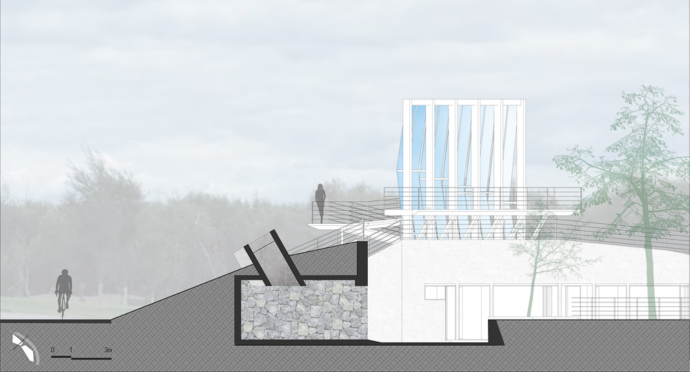 건물은 반지하 형태의 공중화장실, 안내센터, 언덕 위의 전망대로 구성된다. 건물은 철근 콘크리트 구조에 현지 시공기술인 돌을 쌓는 방식으로 외벽이 만들어졌다. 안내센터는 바이족의 염색 기술의 특징인 파란색으로 마감되어 있다. 안내센터 언덕에 있는 작은 구멍은 원형 채광창이다. 이곳을 통해 빛이 들어오면 세 개의 원이 서로 메아리치며 색다른 공간감을 만들어준다. 돛과 더불어 작은 구멍은 이 공간만의 특별함을 만드는 요소다.