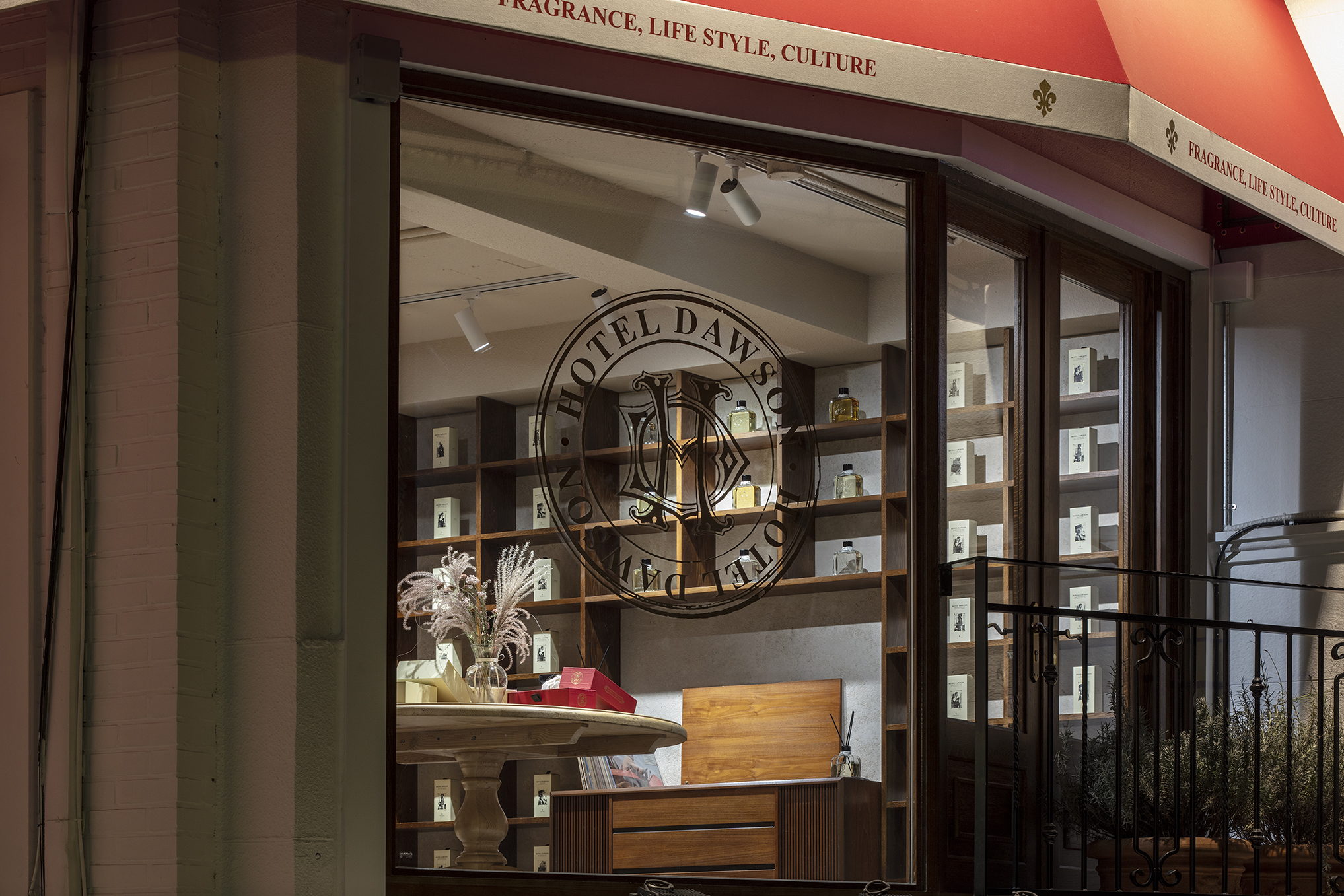 기존의 비쥬얼 아이덴티티를 통해 정립된 브랜드 이미지를 해치지 않으면서도 첫 플래그쉽 스토어의 디자인 가이드라인을 제시하기 위해 고민하였다. 호텔도슨 브랜드의 풍성한 디테일과 엔티크함을 과하지 않고 편안하게 표현하기 위해서 공간의 컬러를 배제하고 디테일 양식과 재료의 물성으로만 브랜드를 드러내고자 하였다. 빈티지 원목가구, 무늬목, 원목 등 다양한 종류의 목재가 어우러지게 하여 우드의 색감과 질감, 그리고 시간의 깊이를 보다 풍성하게 표현하였으며 몰딩과 같은 디테일 양식에 강약을 주어 브랜드의 이미지를 모던하게 해석하였다.