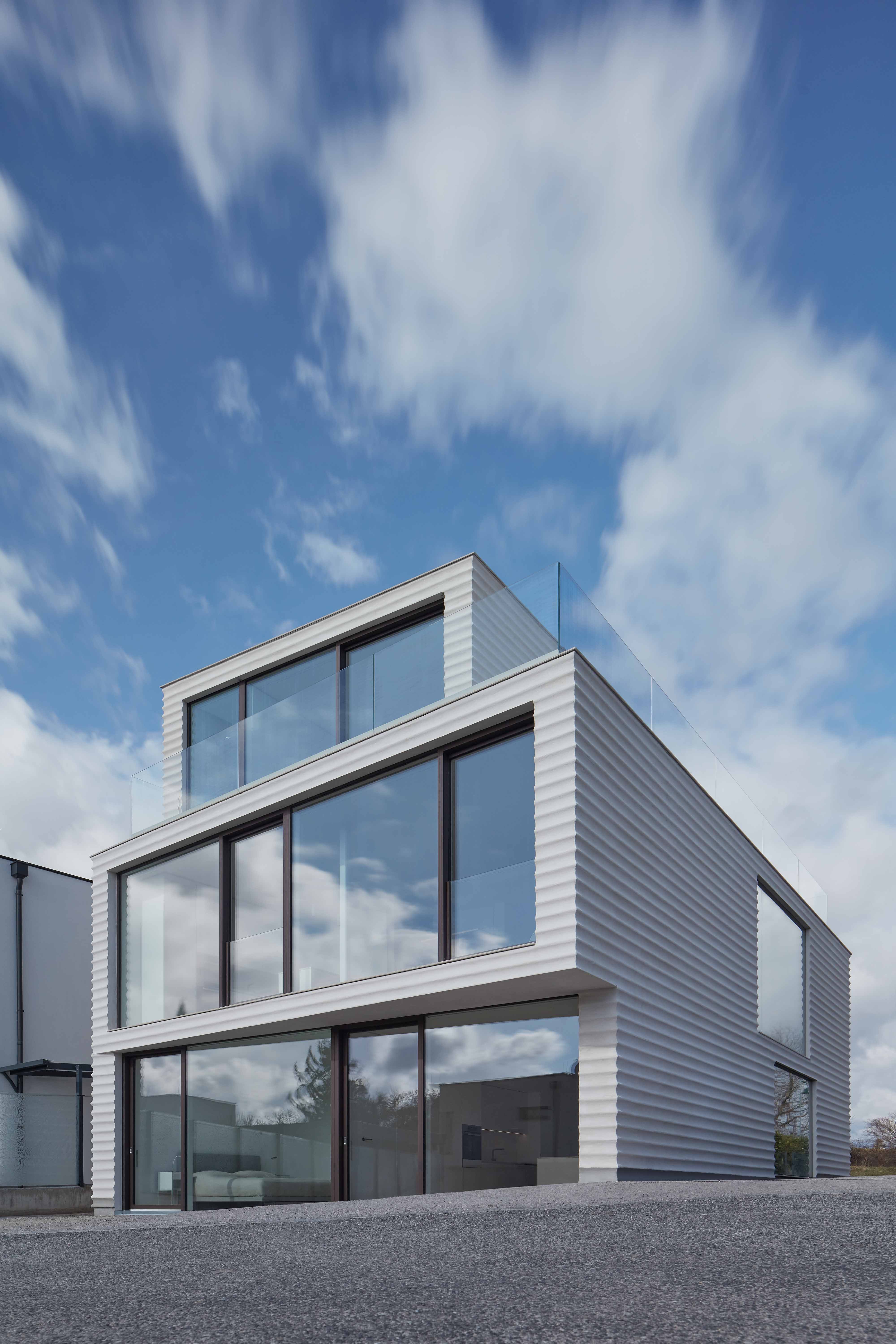 오스트리아 빈 외곽, 한적한 마을에 있는 이 소형주택은 2세대 가족을 위한 현대적인 생활 공간이다. 생활공간으로서의 컨테이너는 90도 각도의 매스와 약간 어긋나는 상보 각의 불일치 사이로 시선을 끌어당긴다. 벽 구조에서, 그리고 평면상에서 보이는 두 각도의 만남은 건축물 전체의 움직임을 느끼게 한다. 입구에서부터 열린 넓은 생활 공간과 수직과 사선 사이에서 이러한 상호 작용을 일으킨다. 새로운 주택의 형태는 빈에서는 독특한 형태로, 이곳의 전통적인 공예품을 연상시킨다.