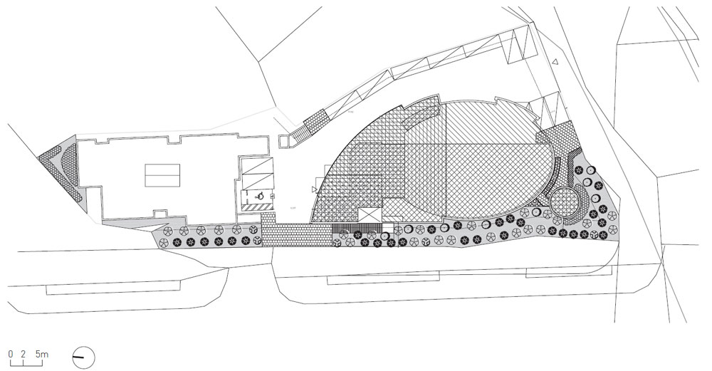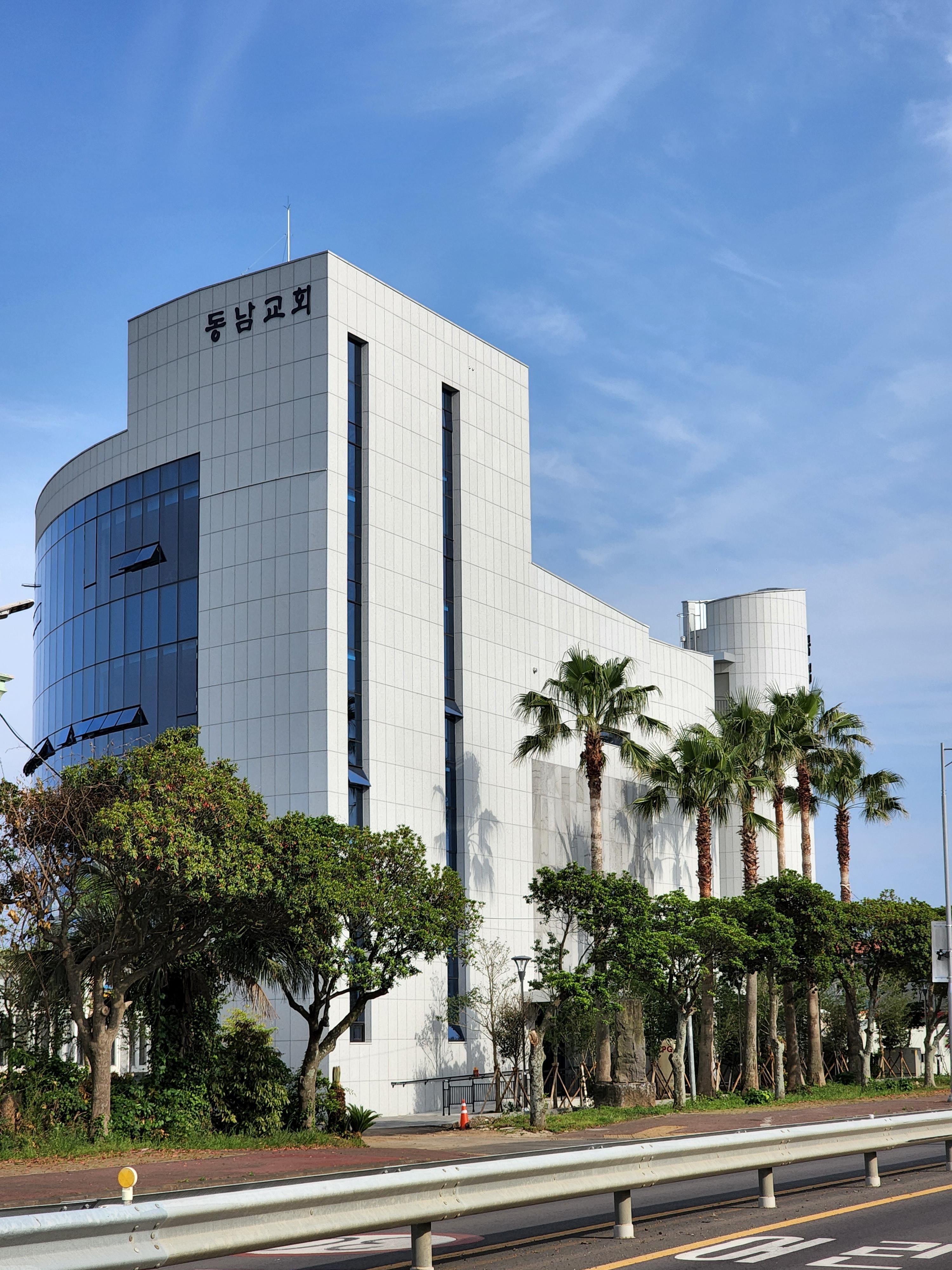 The site is an area with a unique atmosphere of Jeju Island, located near Seongsan Ilchulbong Peak and Seopjikoji. To reflect this sense of place, the embossed shape of the exterior of the building expresses the shape of oddly formed rocks piled up on the beach like the cape of Seopjikoji, and the curved roof layer expresses the vent of Seongsan Ilchulbong. The main sanctuary is designed to express the waves of the Jeju sea. This is also a functional form in which sound is spread evenly from the pulpit. A round perforated plate (sound-absorbing material) is attached on the wall at an angle to reduce resonance, and a diffuser is placed on the wall behind the choir so that the sound is transmitted to the end of the space, creating a space optimized for worship activities. Natural scenery unique to Jeju is invited into the interior of the lobby, cafe, and rooftop futsal court, creating a space for communication between users and between users and nature.