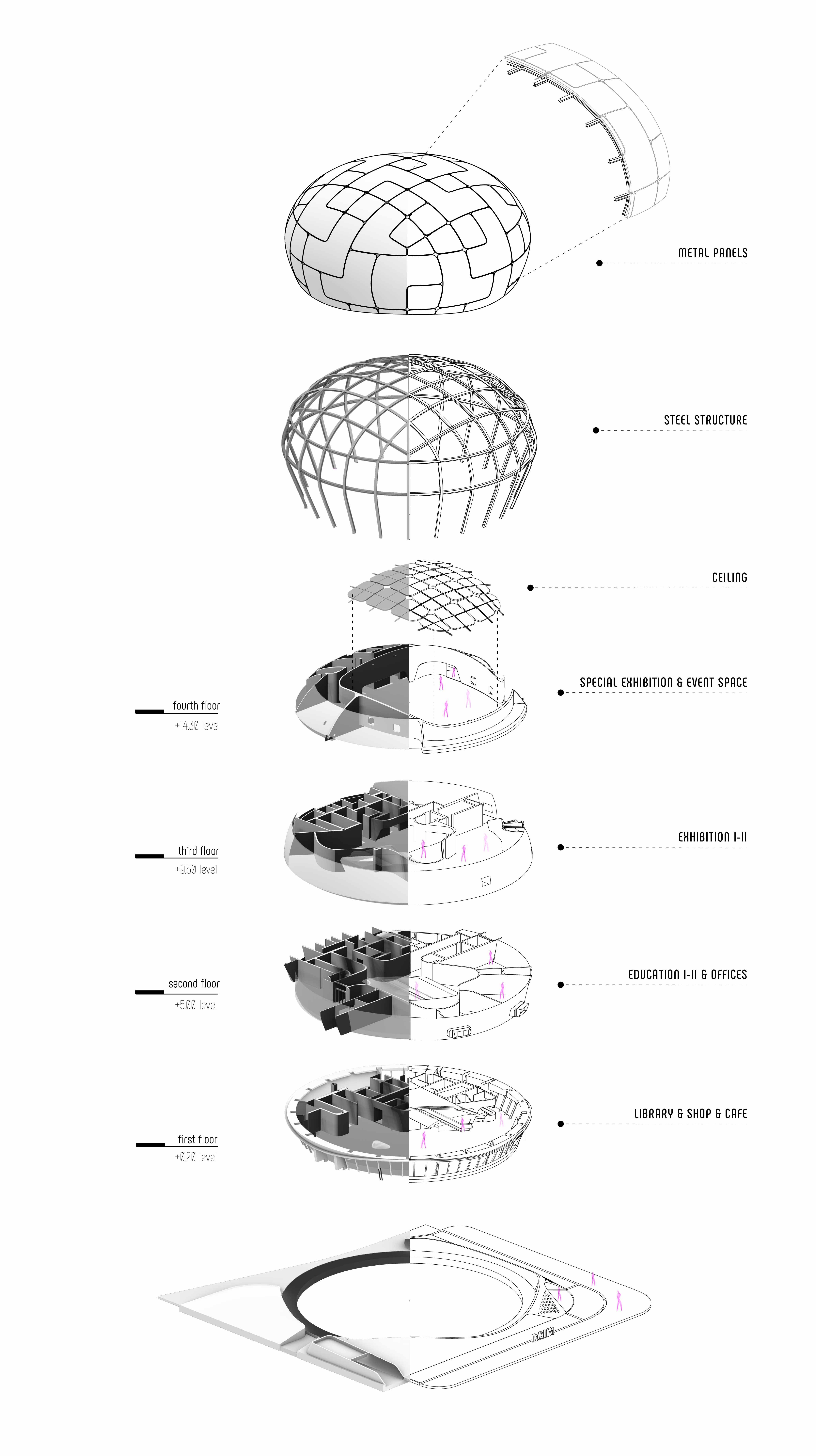 In 2018, The Seoul Metropolitan Government hosted an international competition and called for the ideas to design World’s first pioneer Robot & AI Museum (RAIM) to support public education in robotics and increase the public knowledge and interests in robots. Turkish practice Melike Altınışık Architects - MAA which has gained international recognition with their latest project Istanbul's futuristic 369m tall TV and Radio Tower, has won an international competition for the Robot & AI Museum located in Seoul. RAIM is a specialized science museum and a core cultural facility that will serve as a base for the 4th industrial revolution in the northeast region where entrepreneurship, job, housing, culture, and commercial functions are harmonized. It is expected to inspire new vitality in the region as a science and culture network that connects researchers of nearby universities, research institutes, and corporations and citizens. MAA preferred a sphere like non-directional, fluid, and organic form instead of rigid geometry and orthogonal forms. MAA used this form language as a design tool for meeting functional requirements and conditions which creates its own universe for the robots and their visitors inside this museum. It creates a wide range of possibilities for connection with urban orientation and public spaces within its non-directional form generation. RAIM which plays a catalytic role in advancing and promoting science, technology, and innovation throughout society, is not only going to exhibit robots it will become the ‘Living Room’ for smart technologies which can allow people to interact with Robots, AI, AR, VR, XR and more….