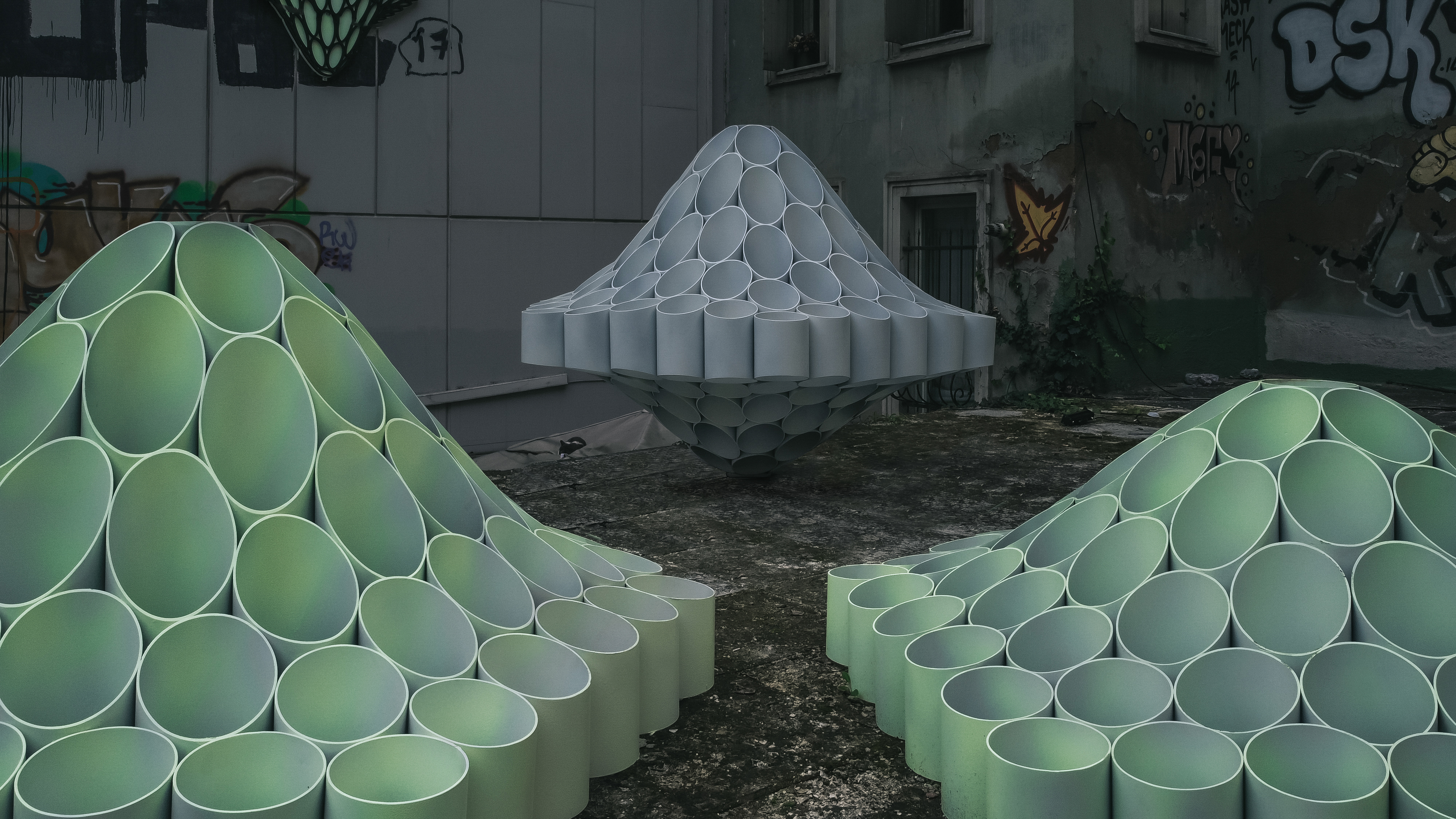 ‘THE ECHO’ is designed by recycling waste water pipes. It is also an installation design that supports the reduction of carbon footprint. The gathering of pipes, like drops of water, forms a cluster of lichens surrounding the fountain. The concept of the pipes designing a parabolic form is a symbol of a transition as transparent as water, of a process, even of a moment. At the same time, the symbiotic relationship of ‘THE ECHO’ is not only with the fountain, but also with the city and the natural and artificial dynamics in the city is an answer to the question of ‘how it can define itself with light, while creating the main concept of the design’.