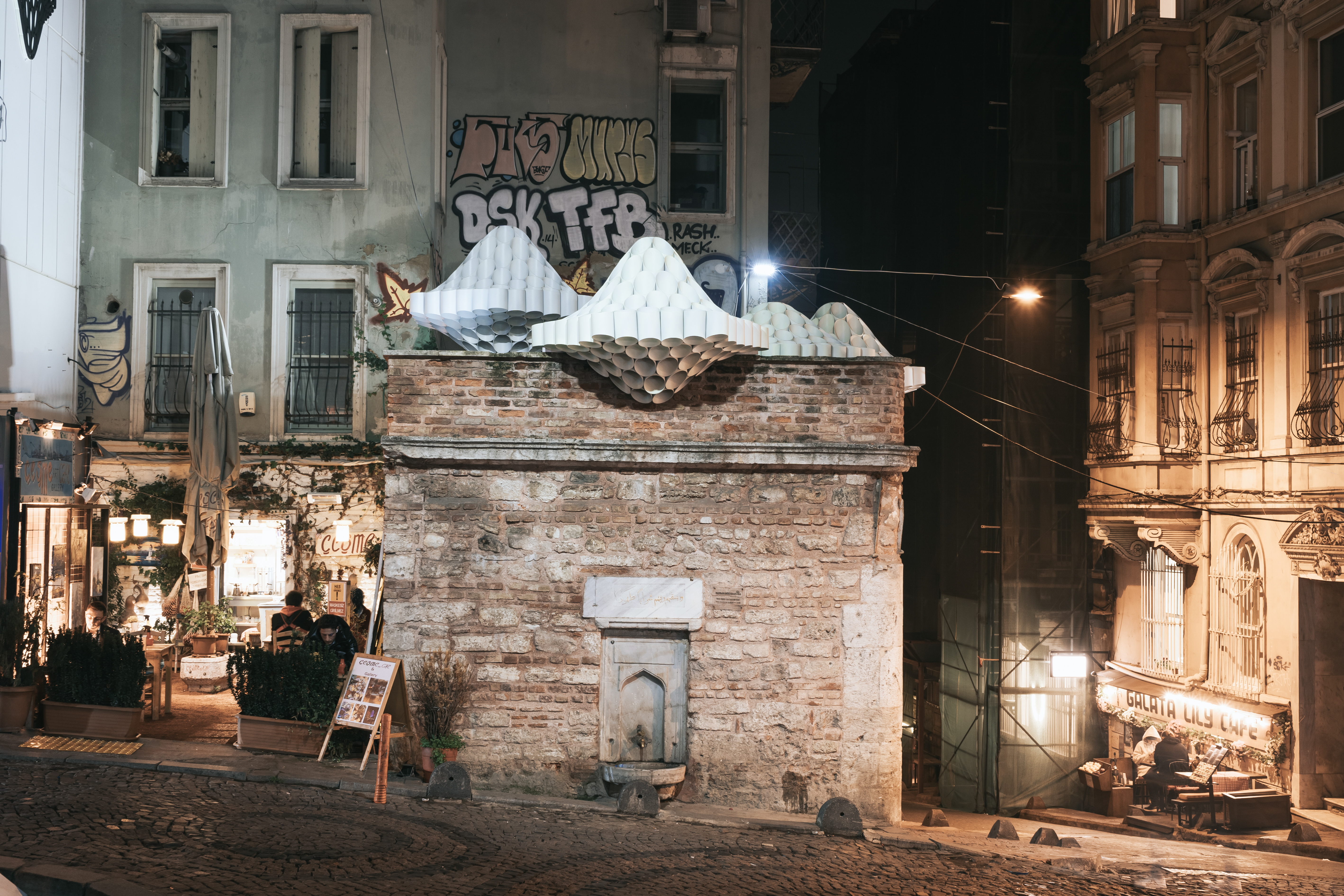 MAA, took part with the ‘THE ECHO’ installation in the Istanbul Beyoğlu Light Exhibition as part of the Istanbul Beyoğlu Cultural Road Festival. MAA establishes a unique dialogue with the citizens by making the invisible visible with ‘THE ECHO’ of Historical Matbah Emini Hasan Ağa Fountain (1649), which is abandoned, forgotten and one of the most important witnesses of many encounters and re-meanings in the city. The Echo draw attention to the light, the dark, the night, the concepts such as shadows and form made visible in the light, togetherness, existence, change and transformation, differences and tolerance.