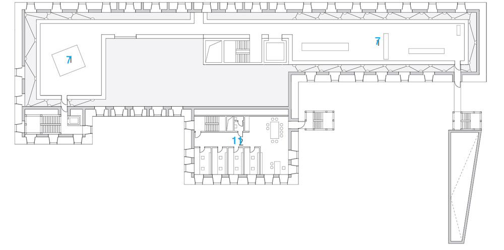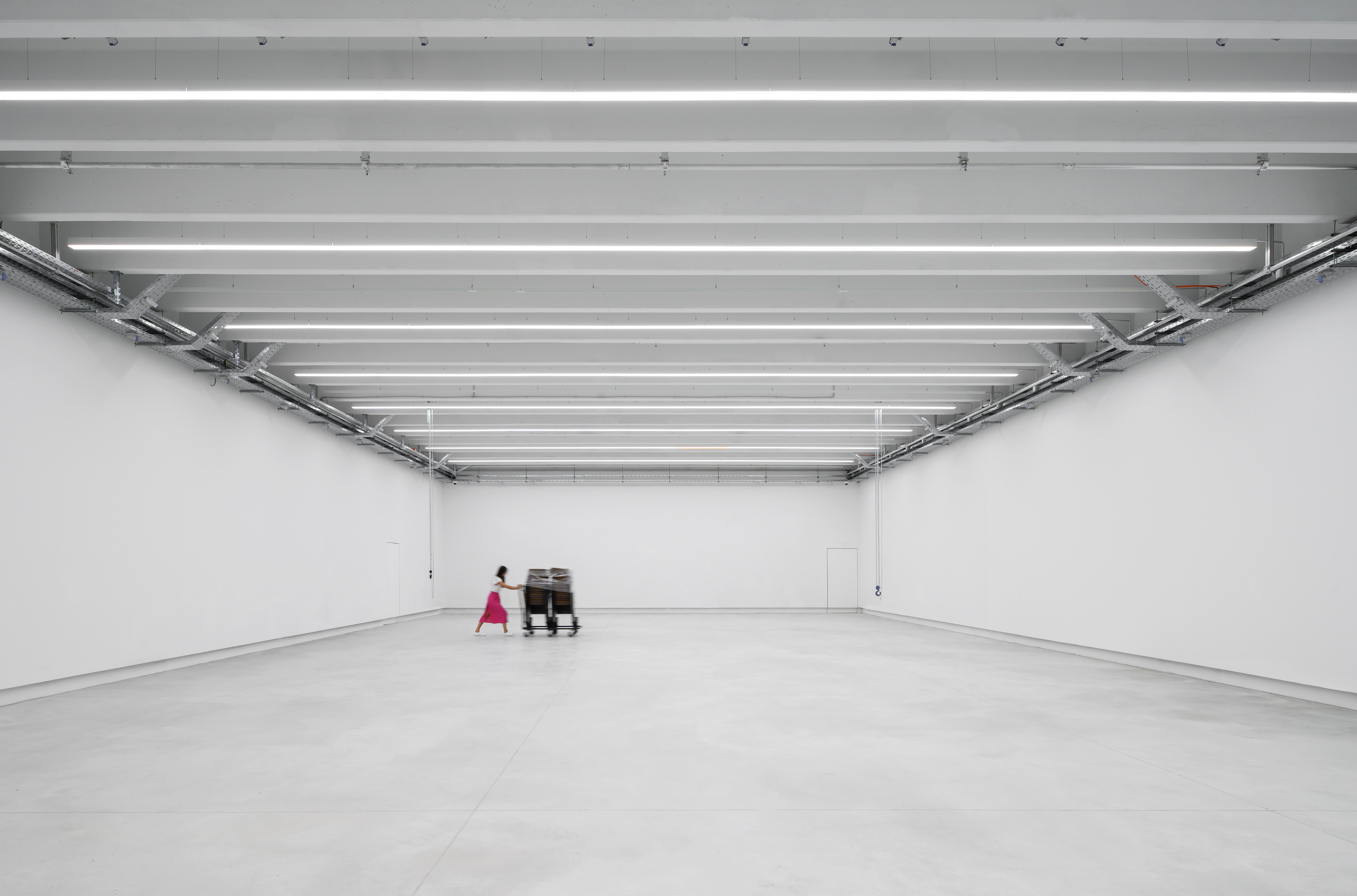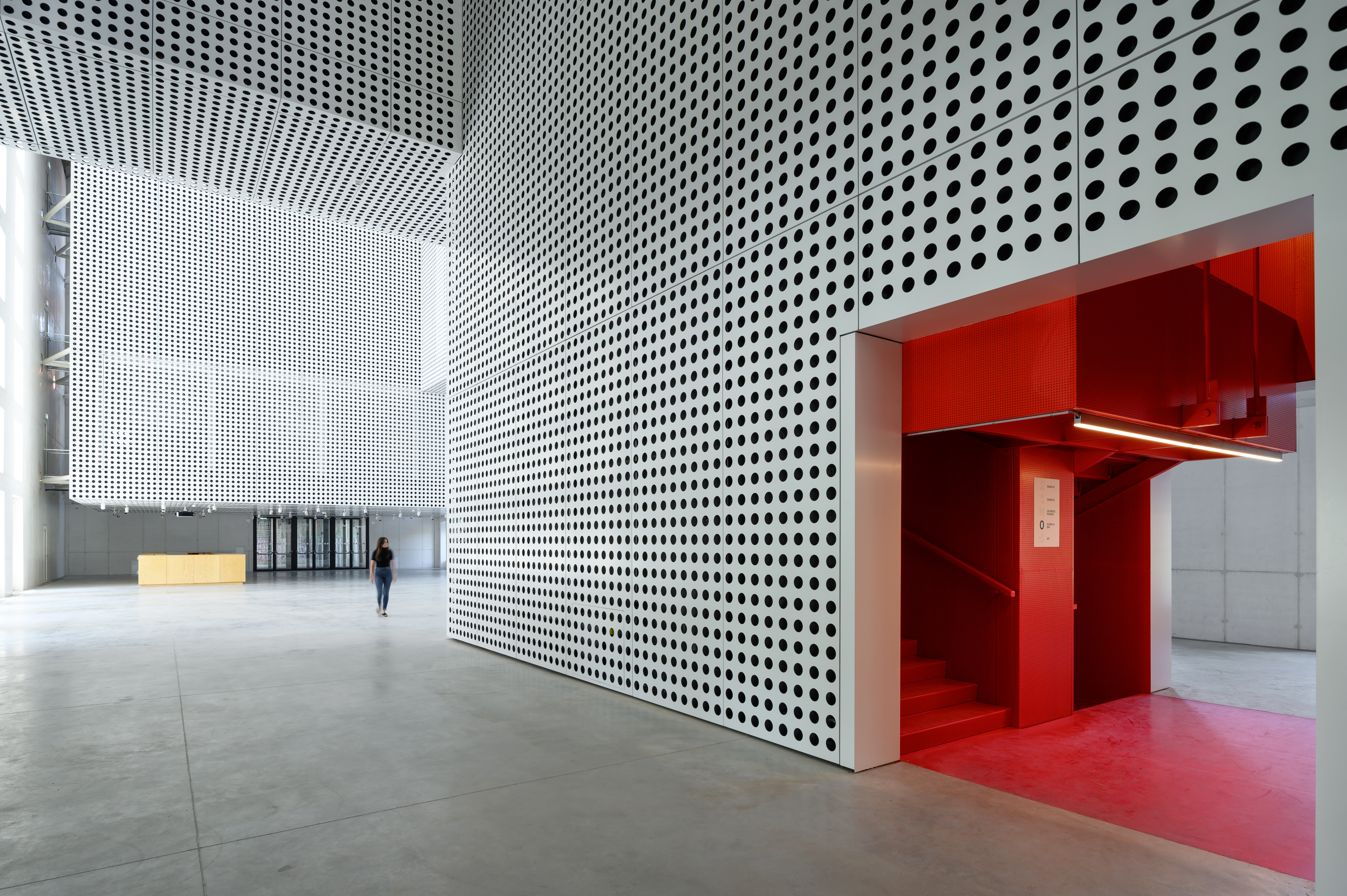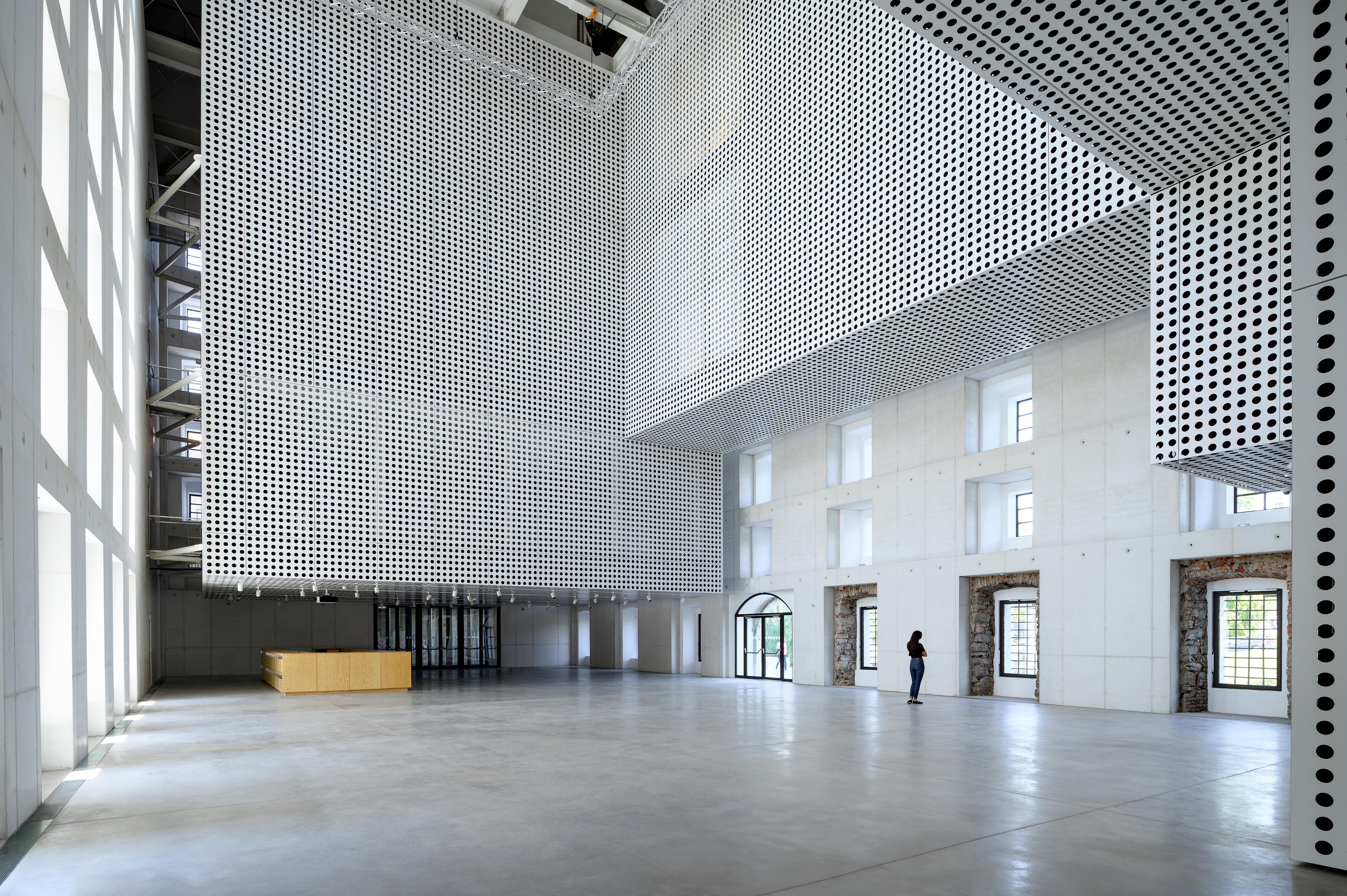 In 2009 the City municipality of Ljubljana organized an international competition to find the best proposal for the renovation of this national monument. Scapelab won the competition with the key idea to carve out all internal structures of the building, preserving only the historic envelope, and converting the building into a multi-functional space for contemporary art. The ground floor is an extension of urban public space, accessible to all, free of charge. Upon entering, visitors are made aware of the gargantuan dimensions of the former factory. The gallery volumes, designed as “white cube” galleries, levitate above the ground floor, hanging from the steel roof structure. They are separated from the historic envelope by a visible gap, and are wrapped in perforated, sleek metal skin, contrasting the concrete walls of the historic envelope. The perforated skin is an aesthetic device, visibly marking the new volumes - but also a functional element. It is an acoustic dampener, reducing reverberation, which makes it possible to hold concerts in the main hall; it is also a lighting fixture, and an HVAC distribution system. The building has a newly excavated basement, which holds a dedicated space for performance art, lockers, technical spaces, and workshops for preparing exhibitions. The gallery bar is designed as a sound stage, becoming a jazz club and live music venue in the evening. The gallery spaces are designed as “white cube” galleries of different proportions. In key positions, the gallery spaces are transparent, showing the visitors new perspectives of the interior space. Part of the gallery spaces is also dedicated as a space for education, lectures, and children’s workshops.