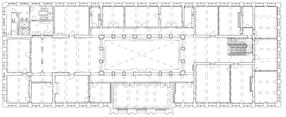 The City Hall becomes a true ‘house of the city’. The ground floor and Noble floor will be (partially) opened up to the public while all councilors and their staff will be brought back under one roof. In addition, the façades and interiors needed to be completely restored, while building also had to be readied for future in terms of comfort and energy performance (BREEAM standard: ‘excellent’). These aims mark the second major transition of the historic City Hall. One that can be compared to the very extensive transition of the 19th century in which changes were made deep into the building’s spatial programme. It is therefore important to situate the current programme in the context of past changes to the building.