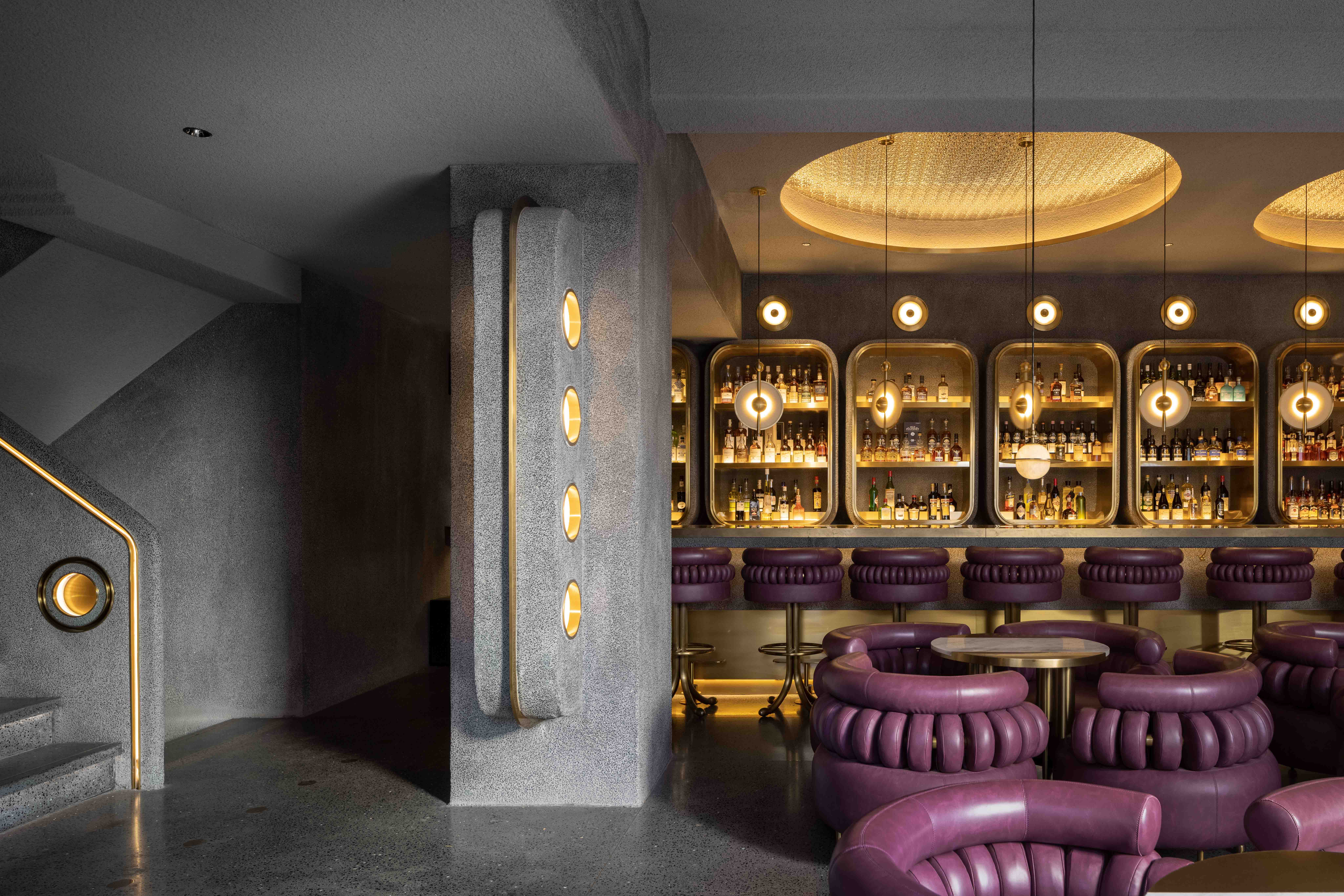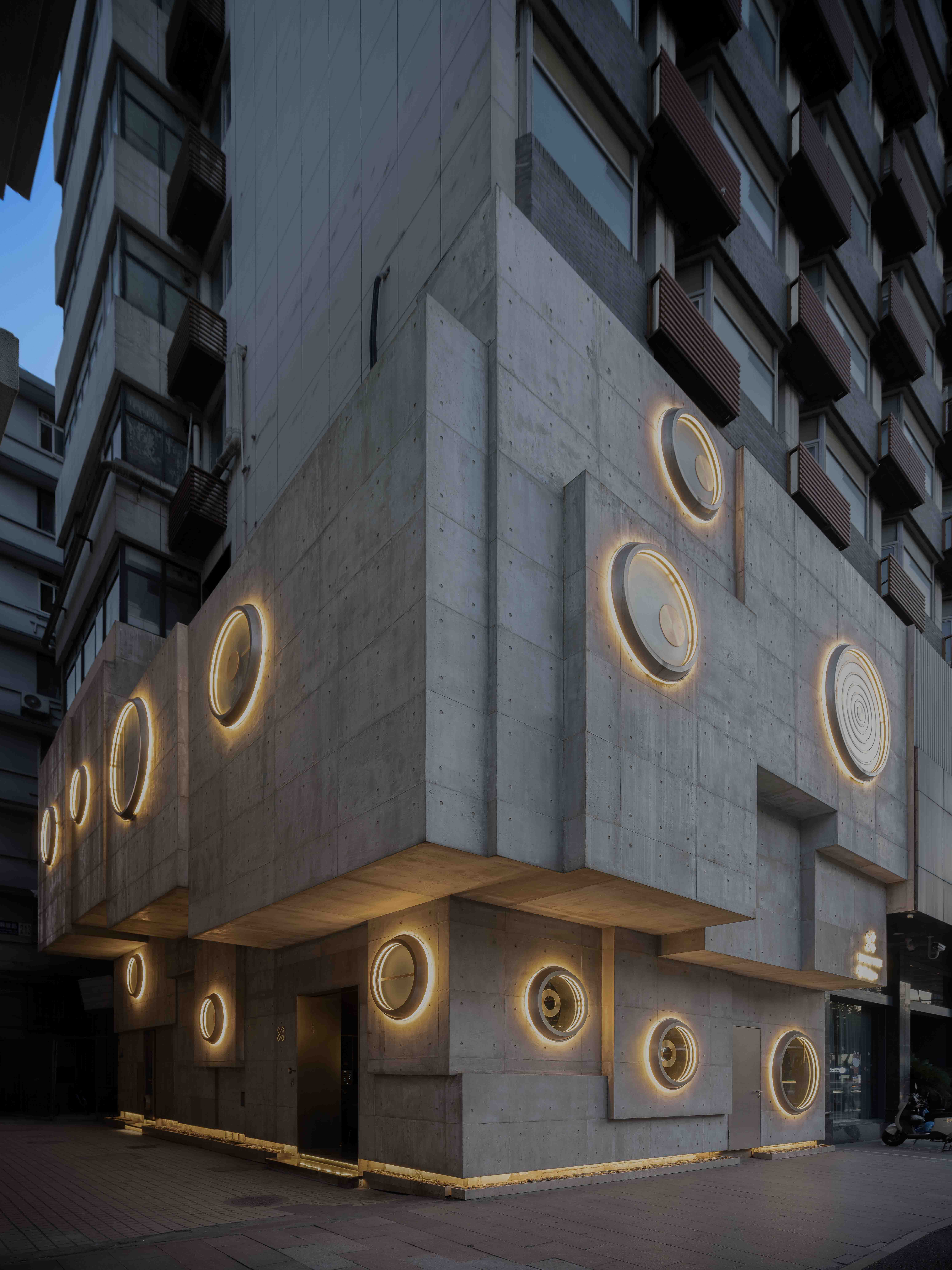 활기찬 밤 문화가 있는 유명한 레저 도시 항저우에 젊은 층을 위한 칵테일 바가 있다. MORE FUN 칵테일 바는 항저우 서호에 인접한 오래된 주거용 건물 1층과 2층에 들어섰다. 루빅큐브처럼 입방형의 블록들이 서로 섞이고 쌓이며, 불규칙한 콘크리트 다면체를 형성한다. 화려한 내부 역시 건축식 모듈 콘셉트가 이어진다. 점, 선, 면을 기본 요소로 디자이너들은 기하학적이면서도 화려한 공간을 만들었다. 1층은 파랑, 초록, 회색으로 코디된 뉴트럴톤을 보여주며 독특한 높이의 조명 가구들을 사용하여 감각을 증폭시킨다. 2층은 회색과 보라색으로 꾸며졌고, 천장의 둥근 조명부터 둥근 의자가 신비로우면서도 극적인 효과를 만든다.