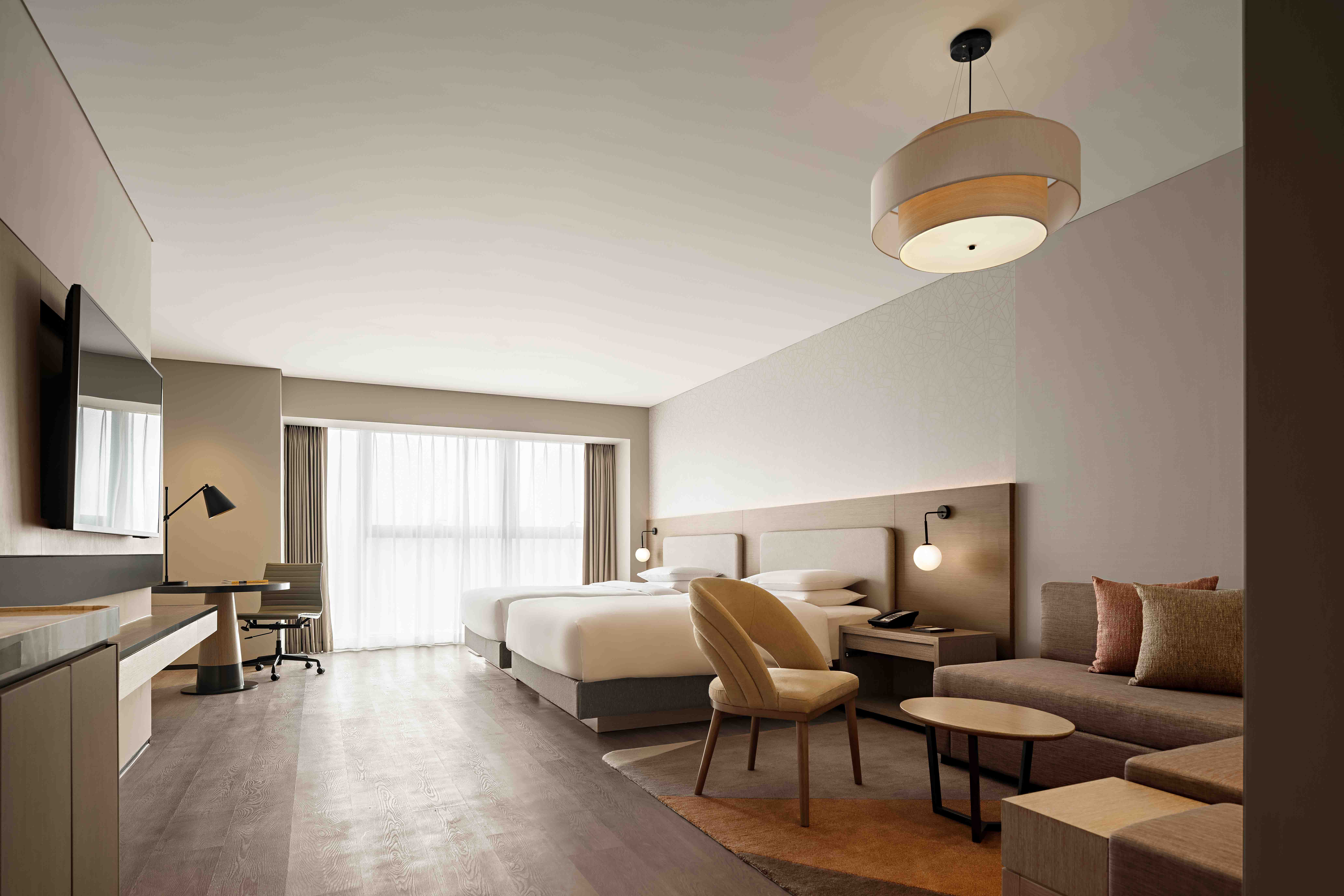 베이징 북서쪽 옌칭 구, 아름다운 경치와 산을 배경으로 한 위치에 하얏트 플레이스가 있다. 이곳의 내부 디자인은 우토피아 랩에서 했다. 브리지 연결부가 있는 로비 공간은 호텔의 중심 공간이다. 정문으로부터 2층 높이의 공간으로 진입하면 자연스럽게 안내 데스크와 체크인 시설을 마주할 수 있다. 로비의 엘리베이터 홀에는 둥근 형태의 조명들이 공간을 비춘다. 카페 역시 캐주얼한 분위이며, 녹색 패턴을 통해 자연의 느낌을 준다. 회의실은 따뜻한 색의 목재로 기본적인 톤을 맞췄으며, 바닥은 기하학적인 패턴의 타일로 마감되어 있다.