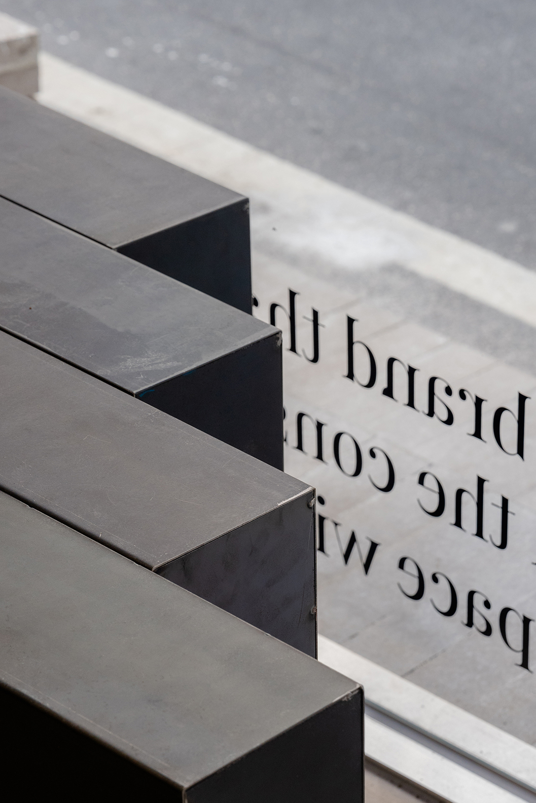 STUDIO SHERPA tried to express the concept of building "relationships" in the structural form of space, and thus took the core concept of a temple. After opening the door and entering, the pillars surrounded by long bricks on both sides balance the space and become the overall basis. In the meantime, the partition with a rough texture and the curved partition in the large main position perform the functions of hangers and mirrors while serving as space separation. These partitions are made in the form of curves and diagonal lines, which show a dynamic feeling as well as colorful traffic lines. In addition, the details of the hangers centered on the pillars were made with a hanger in a tie-up method so that they can be flexibly changed according to the length of the clothes. In the space of the counter and display, which presents the largest image, the stacking of “relationships” was presented in an intuitive form using a copper plate, giving weight to the main image.