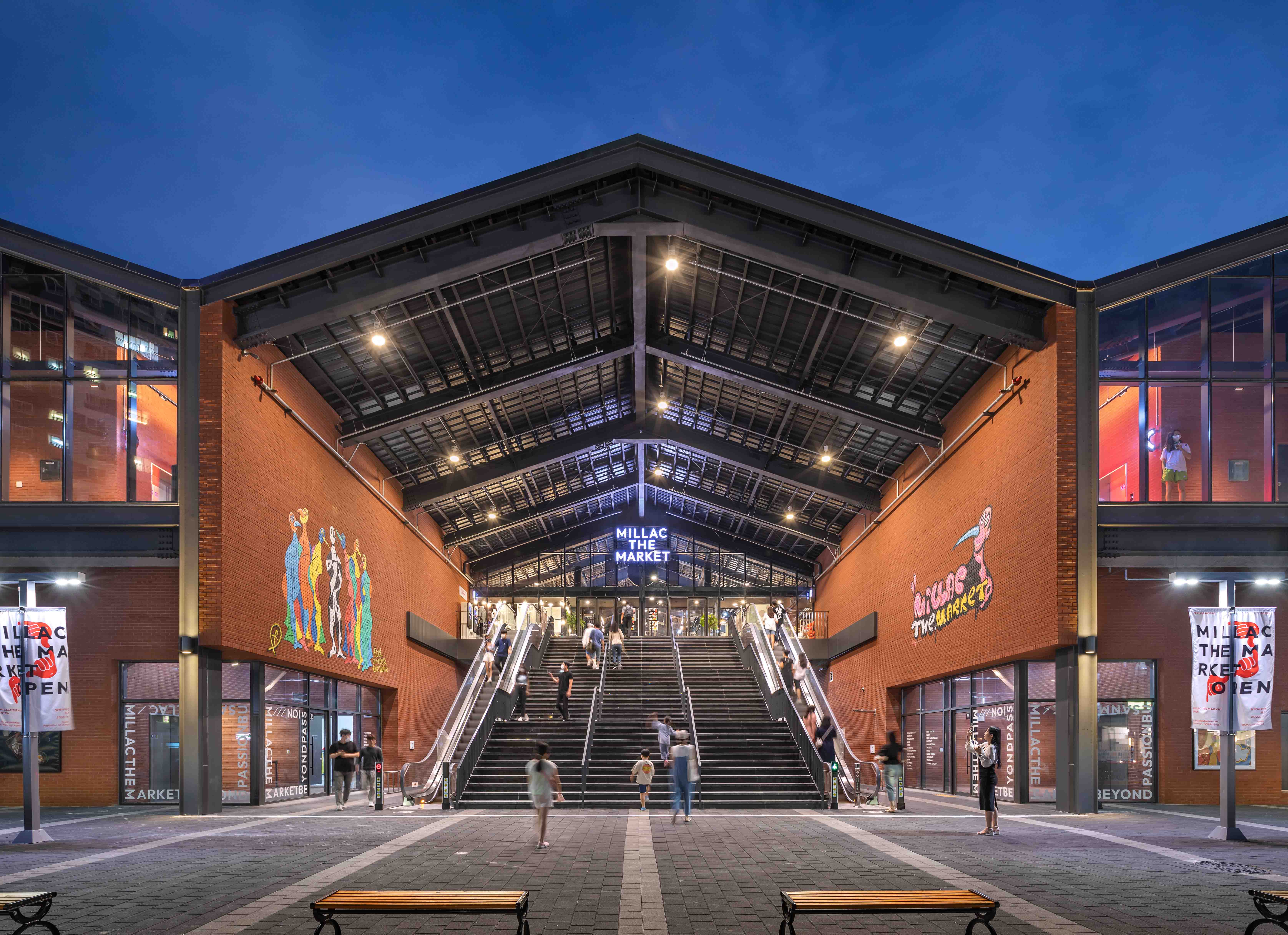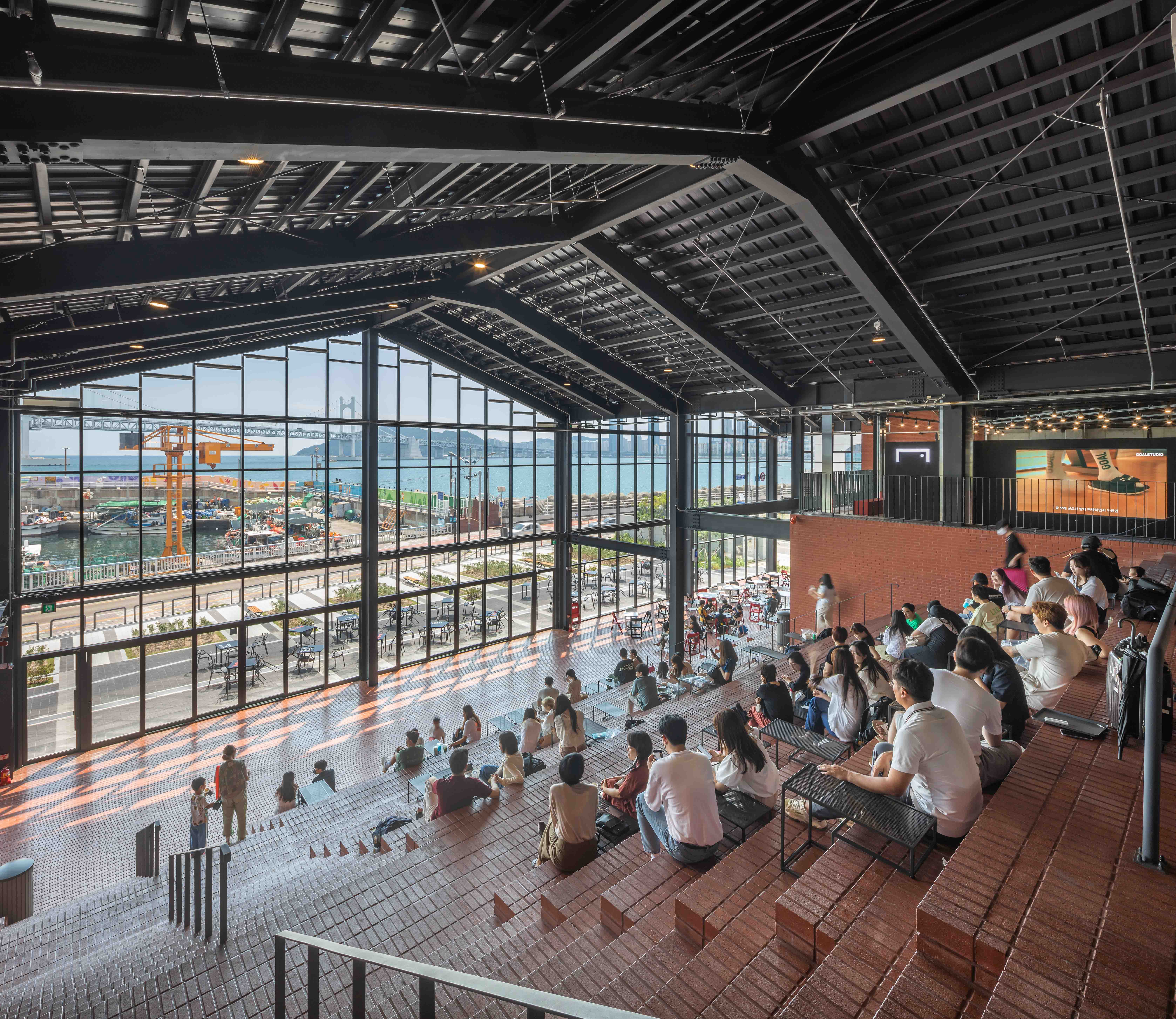 Unlike other coastal commercial facilities that monopolize the sea view with an oversized body, this project approached with value in design without design, as well as emptied and reduced space. The low mass formed at a height that does not obscure the sea view from the nearby residential areas creates a strong contrast with the high-rise buildings, forming a strange urban landscape. Memories of live fish merchants and street vendors near the site in the past were inherited by the market’s program and reconstructed as a space that can capture the actions of locals, cultures, and people. The prototype of a warehouse was an appropriate motif to realize the empty space while forming an urban context of the watersiade of Busan Port. The gable roof is divided into three sections so as not to give visual pressure to pedestrians walking on the beach, and the concisely constructed mass shows the relationship between the coastal view and the sea. The south hall is a transition space that connects the gap between the sea and the city. Millac The Market is a complex place that can have a visual connection to the sea through the Grand Stair, curtain wall, and shared space, and it can become a space for communication and relaxation, and embrace a variety of cultures and events.