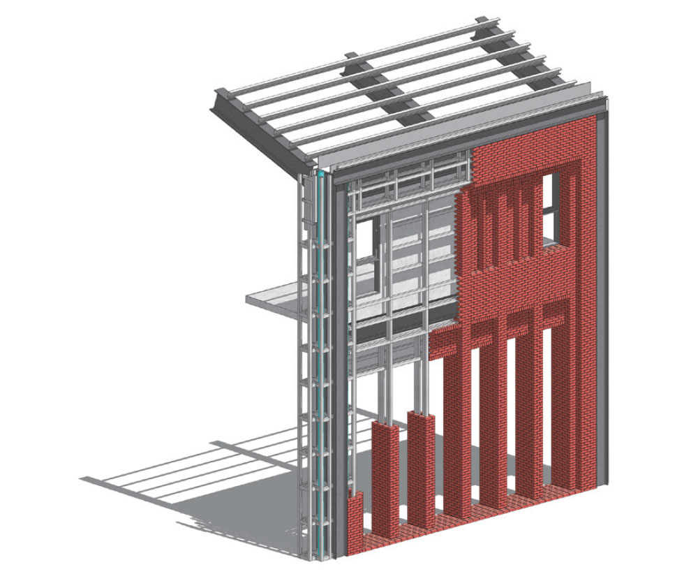 창고가 가지는 단순한 형태에 부합하고 물성이 그대로 드러나는 재료로 적벽돌이 사용됐으며, 도심보행환경에 면한 서측의 긴 파사드는 촘촘한 열주로 계획하여 또 다른 도시의 풍경을 연출하였다. 부산의 근대문화유산인 남선창고 터, 구 백제병원의 파사드가 재료의 구성과 비례, 디테일적인 부분에서 모티브로 이용되었다.